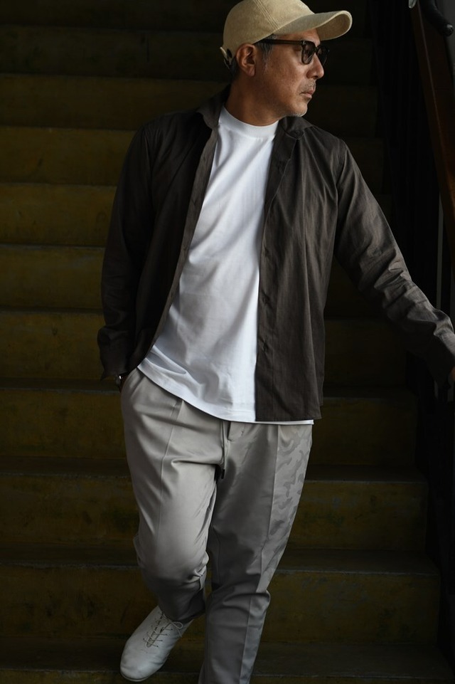 街もリゾートもこれ1枚「7SLEEVE SHIRTS」 リネン調の清涼素材を使い、夏でも軽やかに羽織れる七分袖シャツ。 生地には強撚シック&シン糸を使用し、麻のようなドライ感を表現。接触冷感、抗菌防臭性を備え、暑い季節も快適で清潔な着心地を保ちます。 シルエットは七分袖仕様ですが、袖をまくりループで留めれば五分袖にもアレンジ可能。袖カフスには高級感のあるジュラルミンボタンを採用し、さりげない大人の上品さをプラス。 街着からリゾートまで幅広く対応する「7SLEEVE SHIRTS」。暑い季節の羽織りアイテムとして、ワードローブに加えたい一枚です。 NAGOYAブログ https://junhashimoto.com/archives/155725 素材:ポリエステル 100% 品番: 1062520006 モデルサイズ 5番 178cm78kg ※商品写真はできる限り実物の色に近づけるよう徹底しておりますが、 お使いのモニター設定、お部屋の照明等により実際の商品と色味が異なる場合がございます。