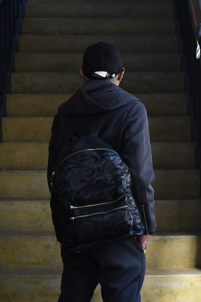 【Maciolla】 " SAMPDORIA BACKPACK " ユニセックスで持てるサイジングを使用した 最新作はBACKPACKをリリース。 本革のシャドウカモフラージュを全面に、背面とストラップにはタンブルレザーをあしらう拘り。随所にはゴールドパーツを使用。ラグジュアリーでありながら軽快なカジュアルスタイルからビジネスシーンまで様々な用途で使えるハイスペックトートバッグ。 尚、こちらには小物ポーチも付属。 縦49cm 横40cm マチ15cm SHOESからBAGまであらゆるレザーを手がけるMaciolla 皮の品質から細部のステッチワークまでを手作業で作り上げ 1点1点がフルオーダーに近い生産背景で担う老舗レザーブランド。