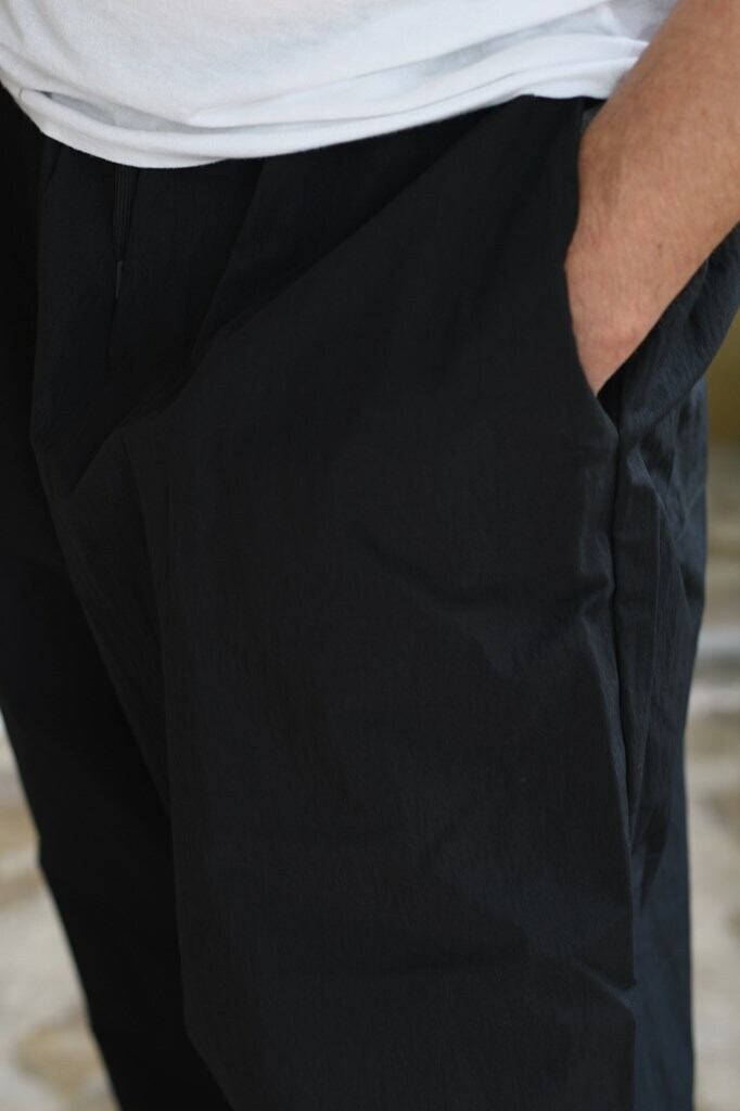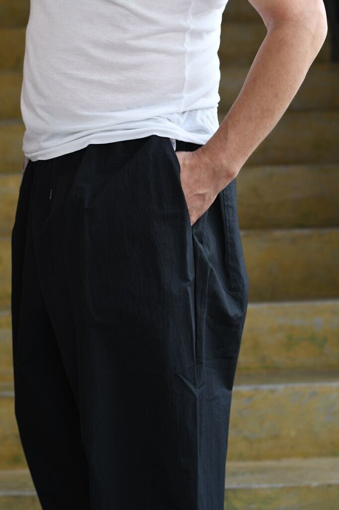 ワイドながら裾に向かって細くなるテーパードシルエット。