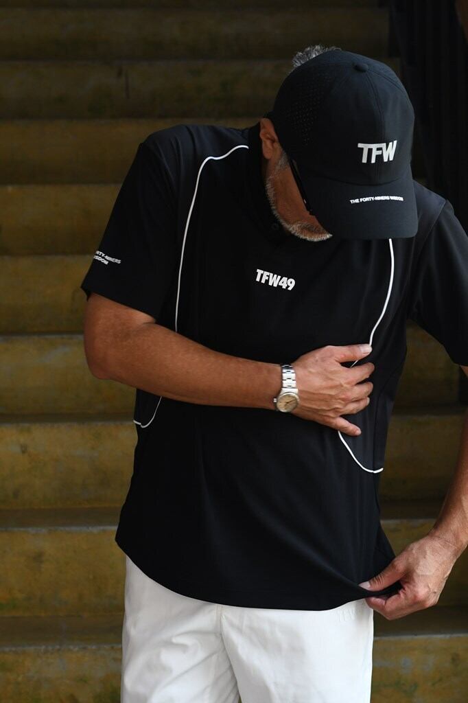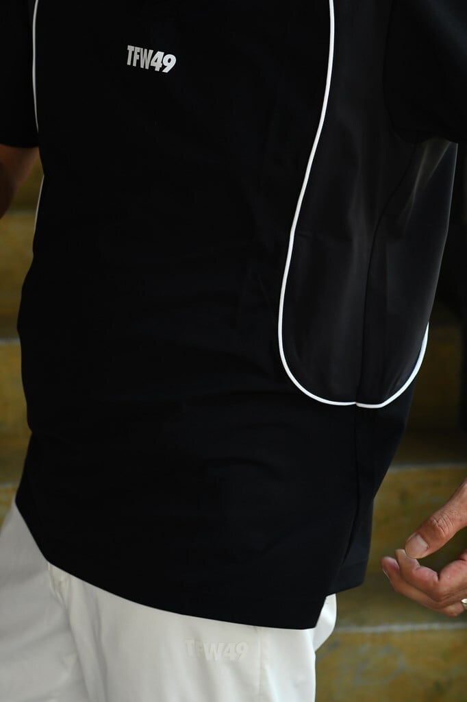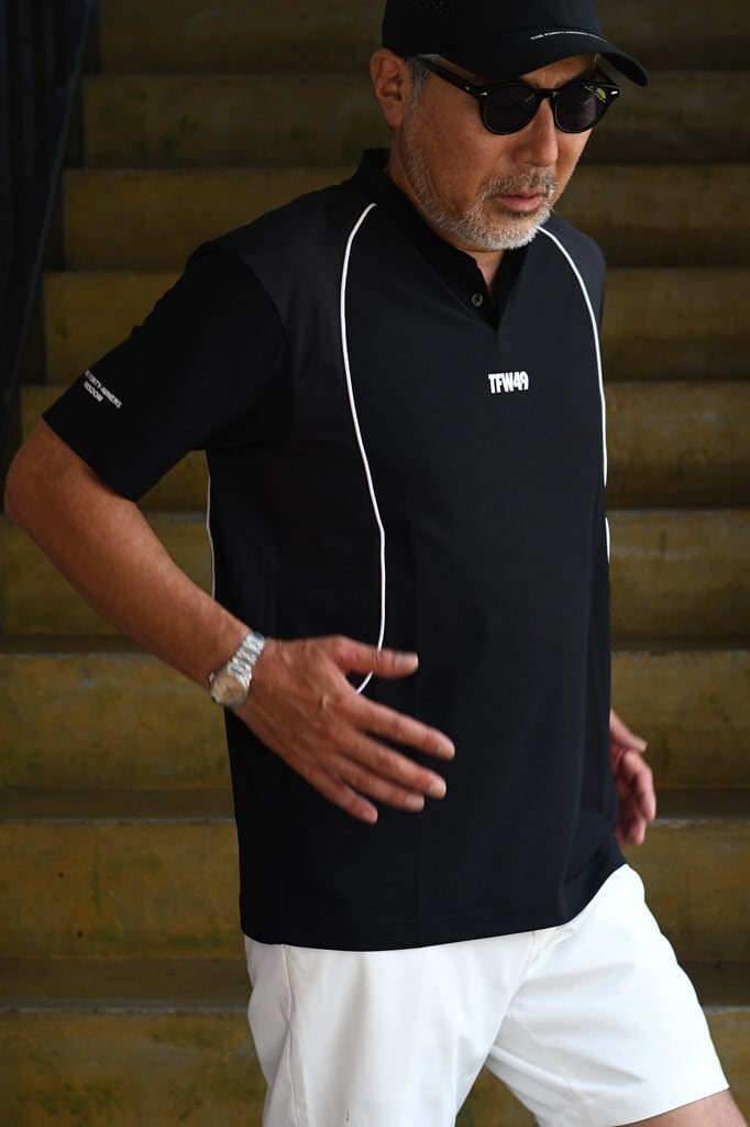 パイピングが映える機能美ポロ「PIPING COLLAR LESS POLO」
