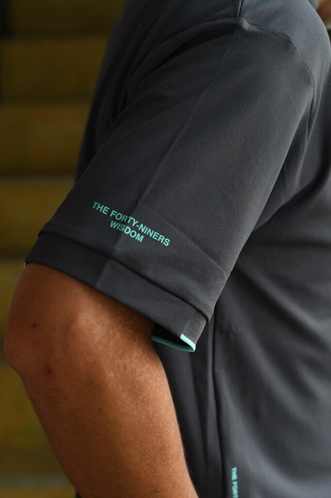 シルエットはリラックス感のあるベーシックな型をベースに、衿元には横編みリブを使用して首まわりに程よいフィット感をプラス。さらに、5種のプリントが施されたフロントに加え、袖口と後ろ裾には配色ラインのリブを配し、機能性だけでなくファッション性も兼備。スポーティーながらも洗練された印象に仕上げています。