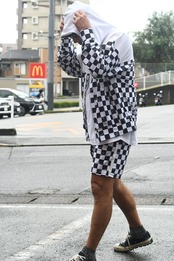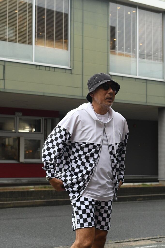 同素材のハーフパンツとセットアップ可能です。