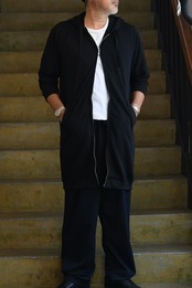 こなれた印象のある裏毛生地を採用したロングパーカー。