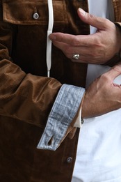 ソフトで耐久性のあるストレッチモダールとコットン混紡のコーデュロイを使用したレギュラーフィットオーバーシャツJK。甘いマスクのブランデーカラーのシックな大人の雰囲気。クラシックなポインテッドカラー、フラップとボタン付きの大きな胸ポケット2つ、カスタマイズ可能なダブルボタンカフスが特徴です。フロントはボタン留めです。