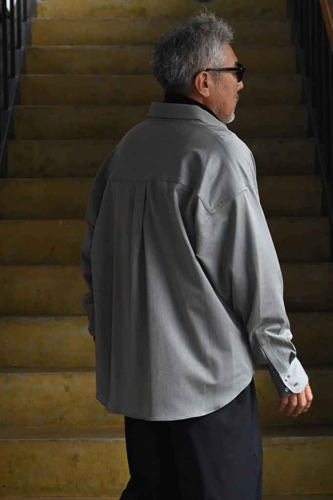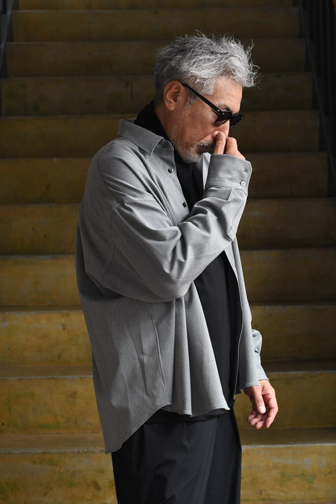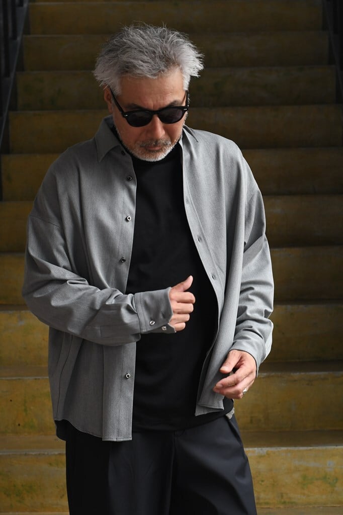 シルエットは名の通りスーパーオーバーサイズながら、ジュンハシらしく要所はすっきりと仕上げられています。長袖のゆったり感を活かしつつ、だらしなくならない絶妙なバランスが特徴です。