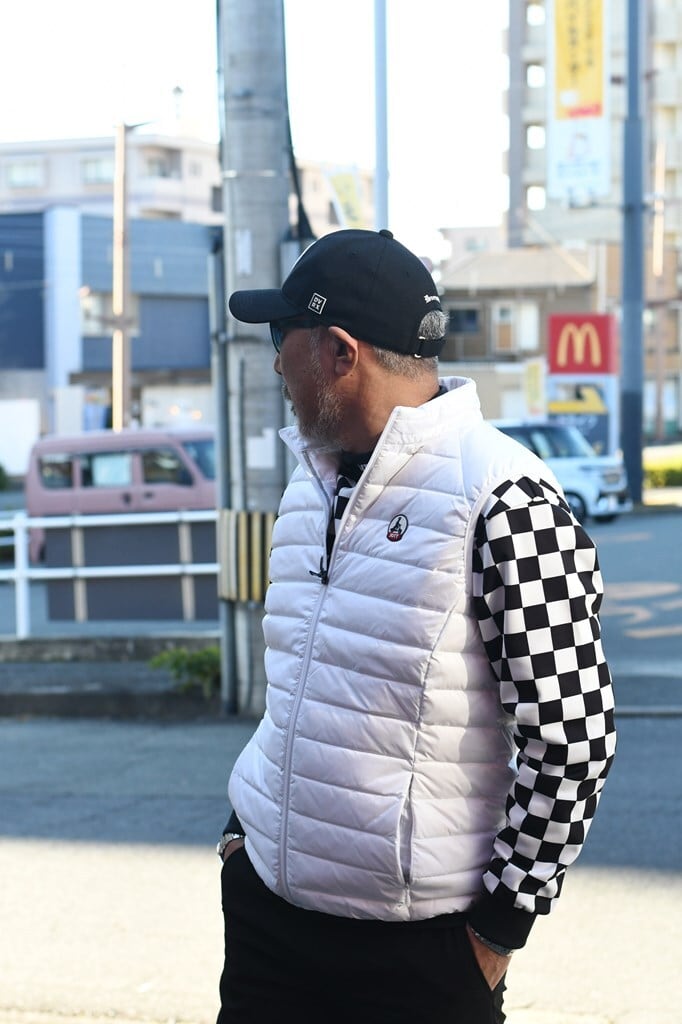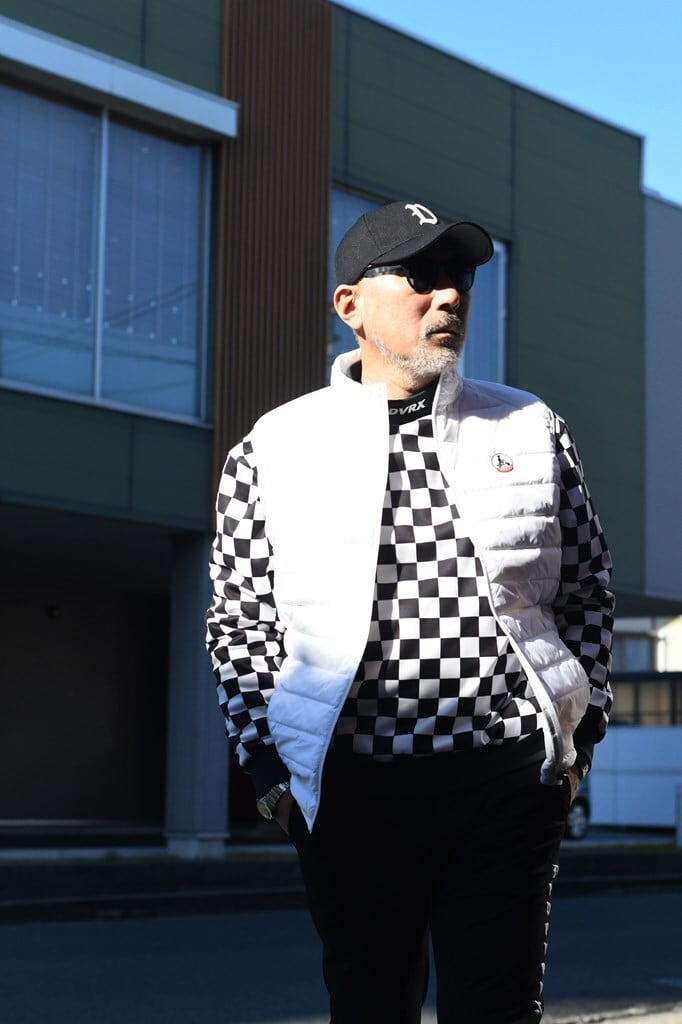 高い伸縮性を持つ機能糸を使用したファブリック「QUIST TEXBRID(クイスト テックスブリッド)」を採用。ポリエステル100%ながら、通常のポリエステル糸の約4倍のストレッチ性を実現しています。長時間着用してもシワや型崩れがしにくく、快適な着心地が続くのも魅力です。チェッカーフラッグ柄に、高級感のあるサガラ刺繍のスカルキャディーワッペンをあしらった、大人のためのチェックトップス。裏面はフリース仕様で、これからの寒い季節のラウンドも快適にサポートします。ゴルフシーンはもちろん、デイリーにも着用できる万能な一枚です。