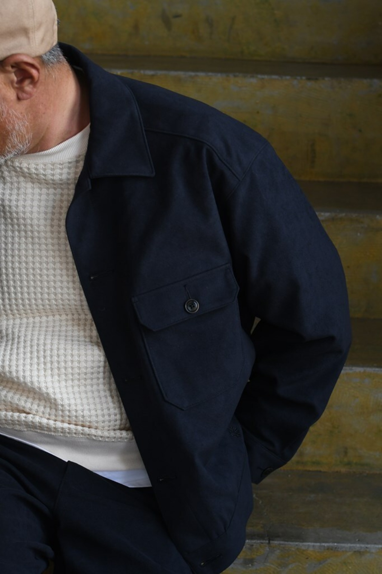 オーバーサイズシルエットで、すっきりとしたフロントと後ろにボリュームを持たせた立体感あるジャケット。