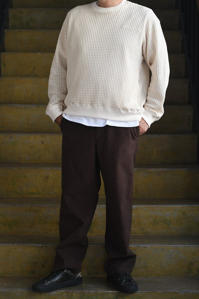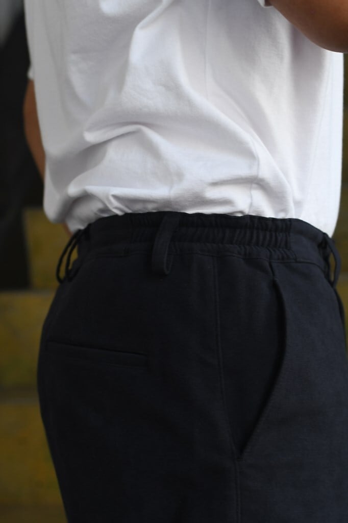 ウエストはドローコード+両脇ゴムのイージー仕様で快適な穿き心地。