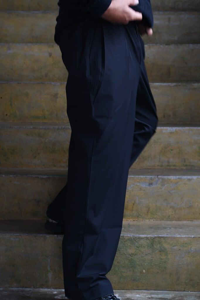 テクニカルな素材と大人なセミワイドシルエットが特徴の