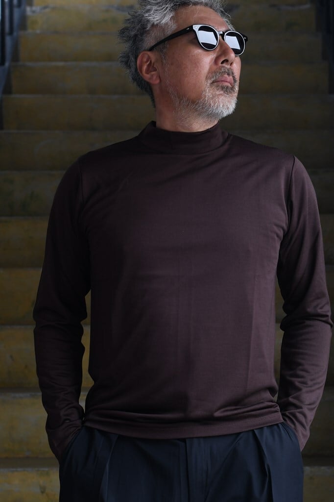 一年中快適に着られる“WASHABLE WOOL MOCK N”。天然素材と機能素材を融合した、スタイルと快適さを両立するモックネックTシャツです。