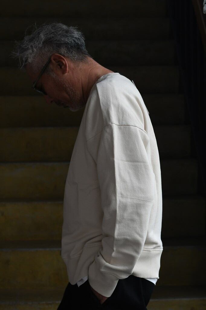 クラシックなスポーツウェアのタッチをデイリーなイメージで製作されたミドルオンスな裏毛素材は、コシがありながら適度に柔らかさがあり、肌触りも良く、軽く吸湿性が高いので快適にご着用いただけます。ラグランスリーブにゆったりしたシルエット
