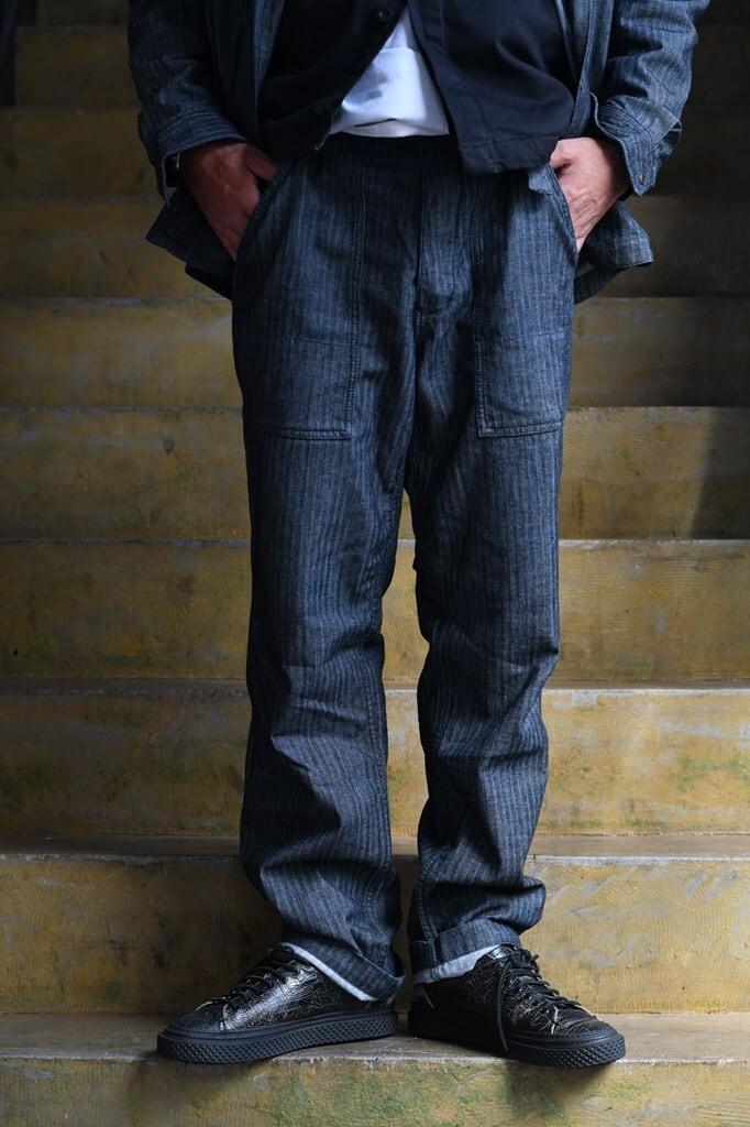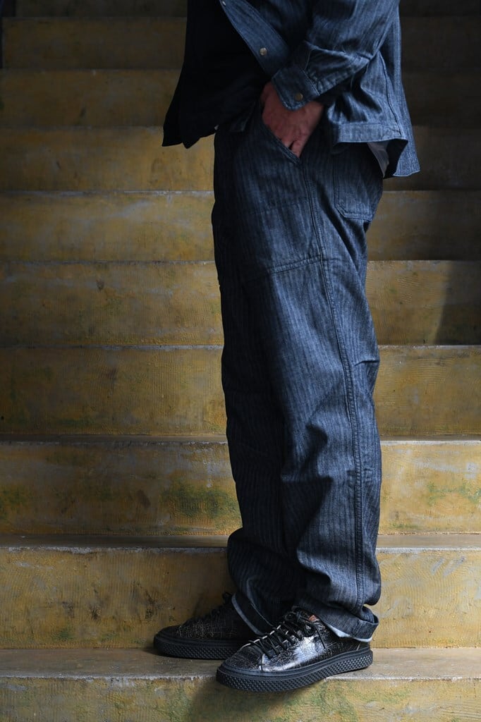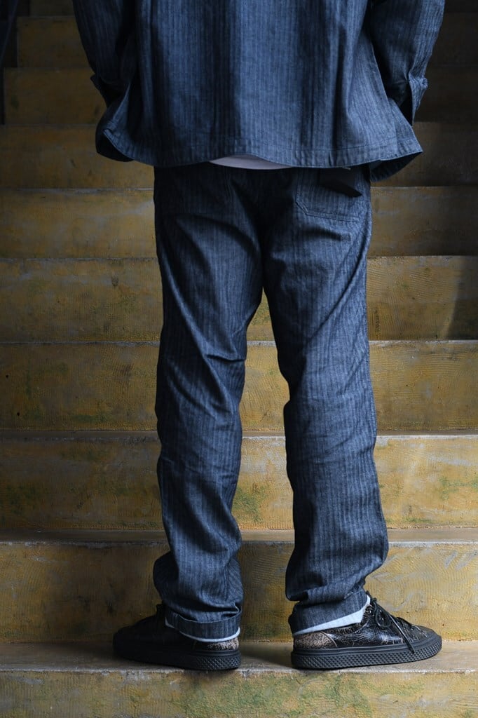 10オンスのコットンブレンドデニムを使用し、ヘリンボーン織りによる独特の質感が魅力のレギュラーフィットジーンズ。ミッドライズのウエストとストレートレッグで、快適な履き心地とすっきりとしたシルエットを両立。リンスウォッシュと自然乾燥仕上げにより、素材本来の風合いを引き立てています。