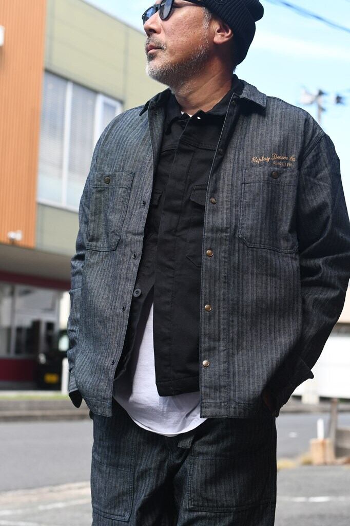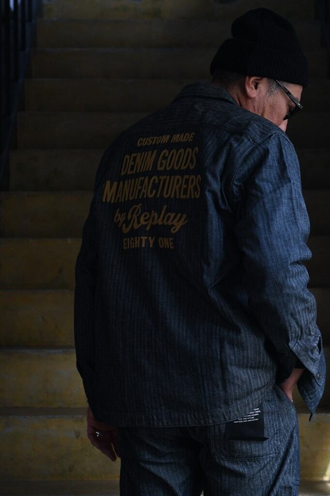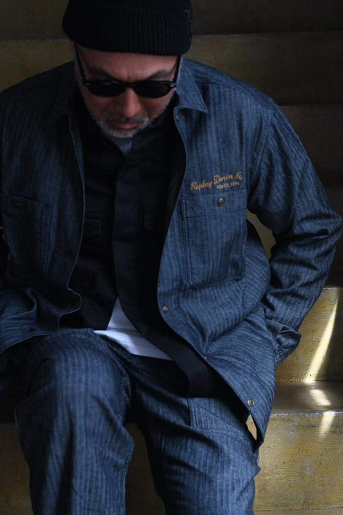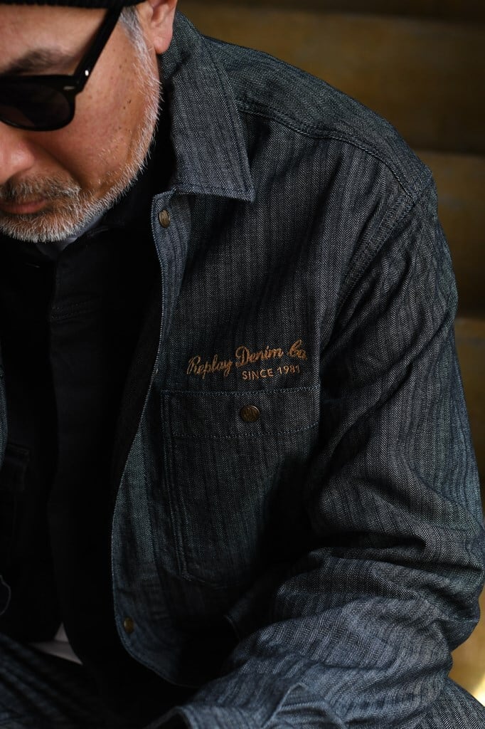 薄手で柔らかなヘリンボーン柄の織り地にこなれ感が漂う<リプレイ>のデニムシャツ。小ぶりな襟やパッチポケット、胸元のレタリング刺繍も相まって、どことなくクラシカルな雰囲気を醸します。バックに大胆にあしらわれた、クラフト感あふれる刺繍にも注目。大人の余裕を演出するややゆとりのあるシルエットなので、一枚着はもちろん、フロントのスナップボタンを外してサッと羽織るだけでもサマ見えします。