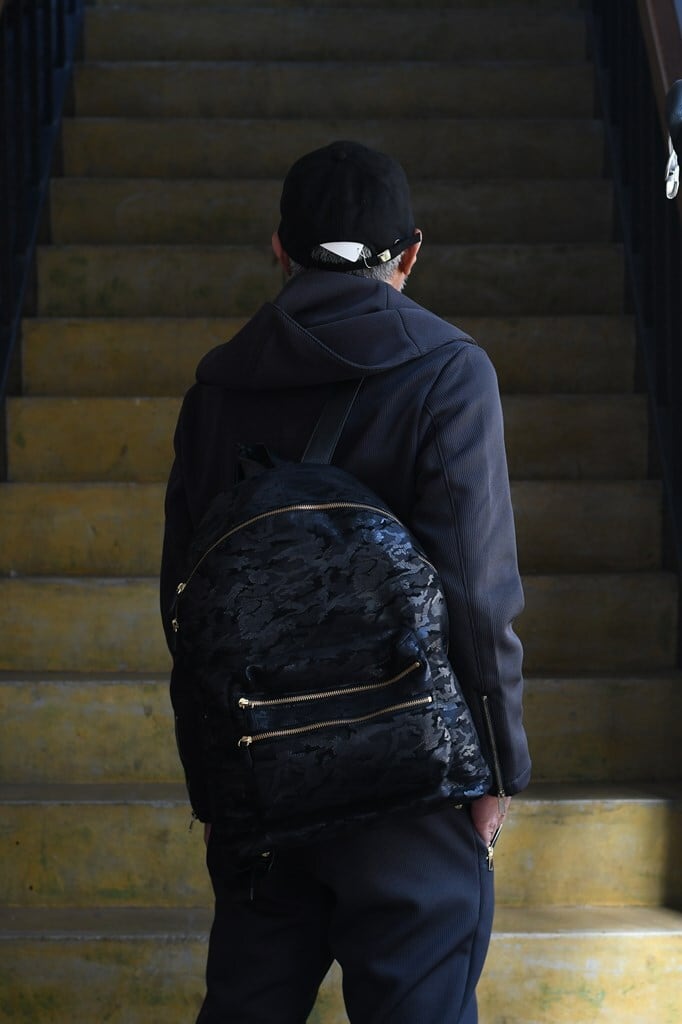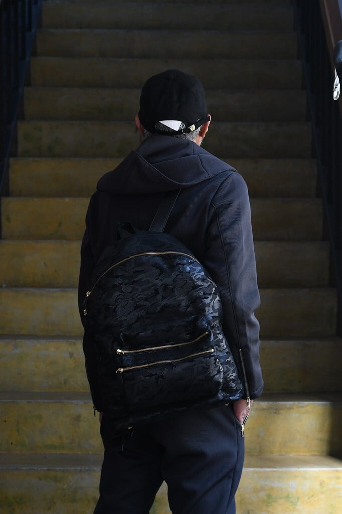 本革のシャドウカモフラージュを全面に、背面とストラップにはタンブルレザーをあしらう拘り。随所にはゴールドパーツを使用。ラグジュアリーでありながら軽快なカジュアルスタイルからビジネスシーンまで様々な用途で使えるハイスペックトートバッグ。