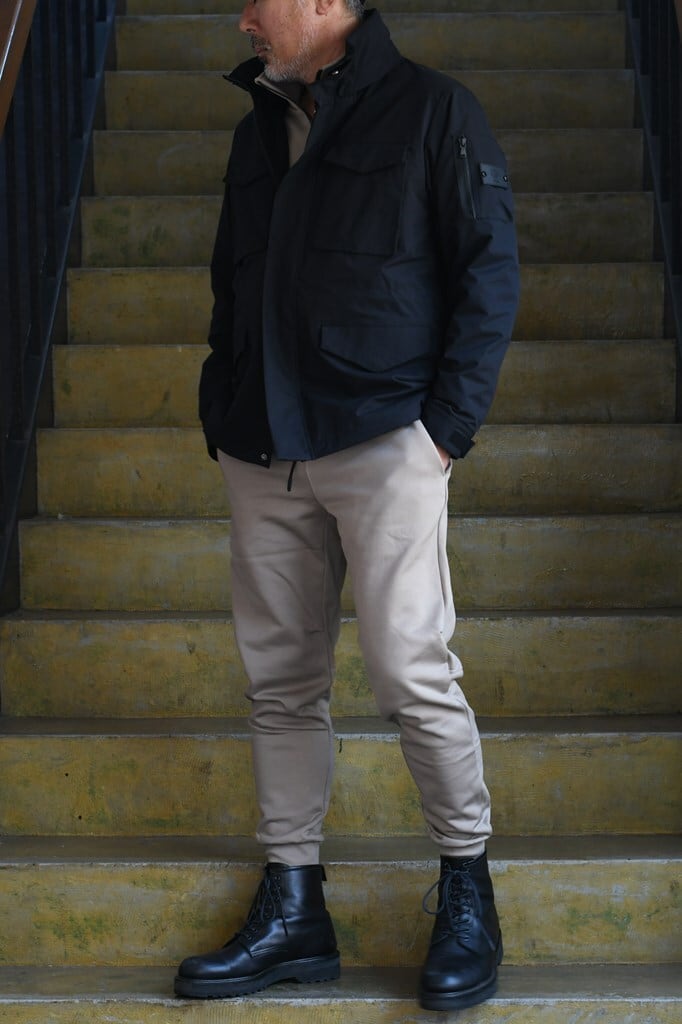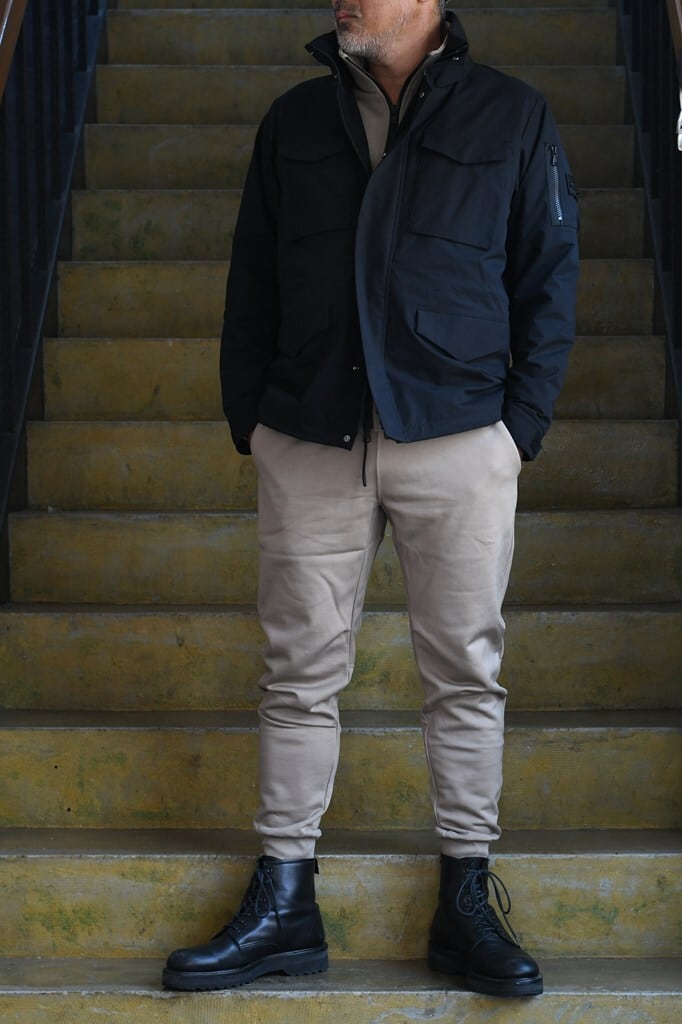素材には、ブランド定番のGROSS RICHシリーズの裏起毛バージョンを採用。ナイロンが持つヌメリ感と艶やかな発色を、独自の加工技術によってさらに昇華。ドライタッチで軽やかな着心地ながら、ポリエステルでは再現できない高級感を実現しました。