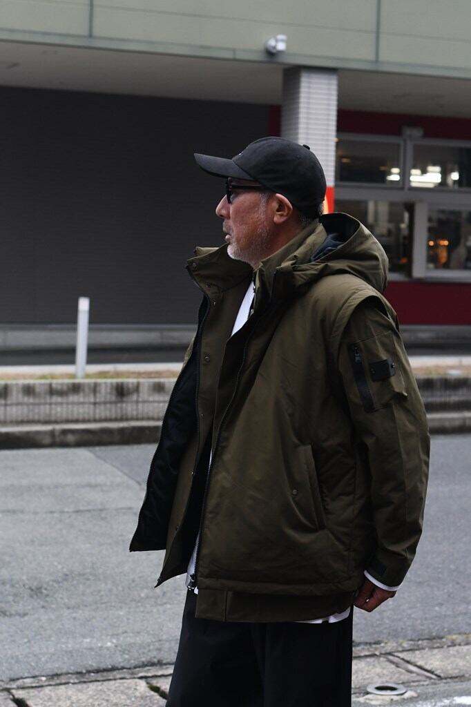 袖とフードが取り外し可能なマルチユース仕様で、1着でブルゾン・ベスト・ジャケットといった幅広い着こなしを楽しめます。