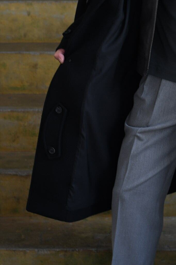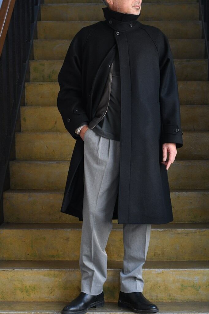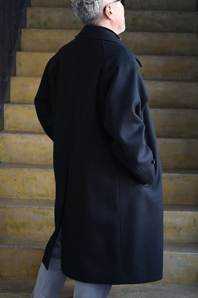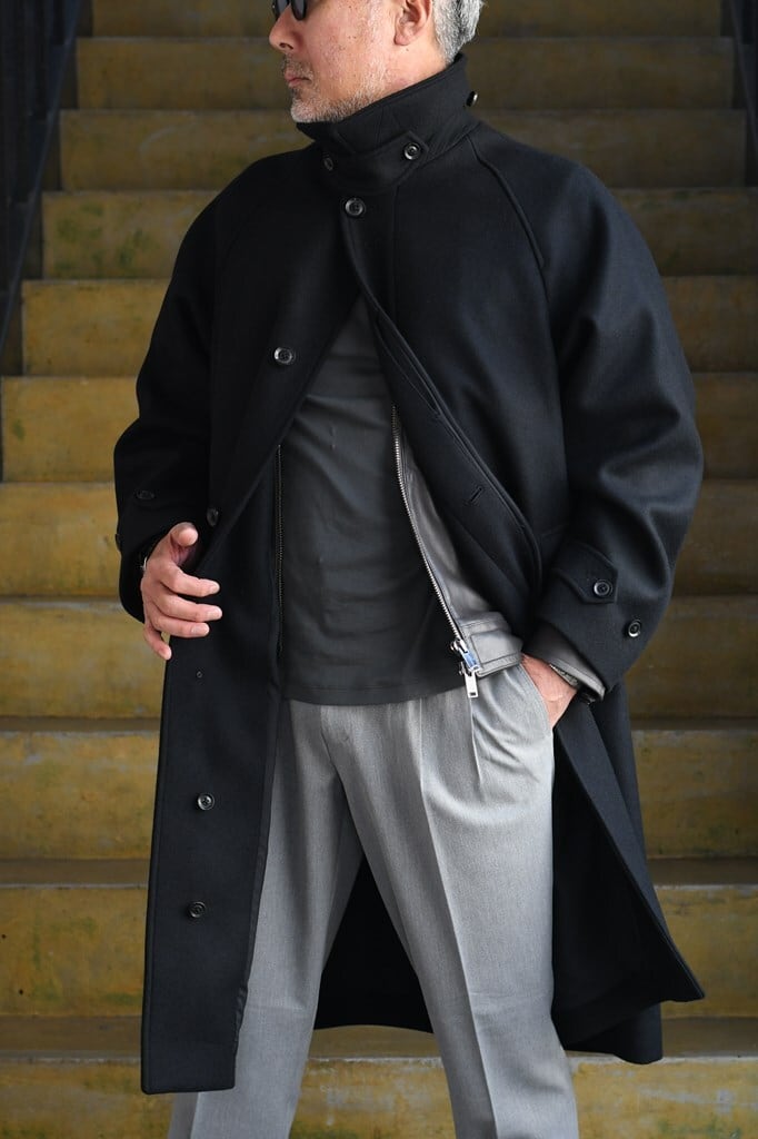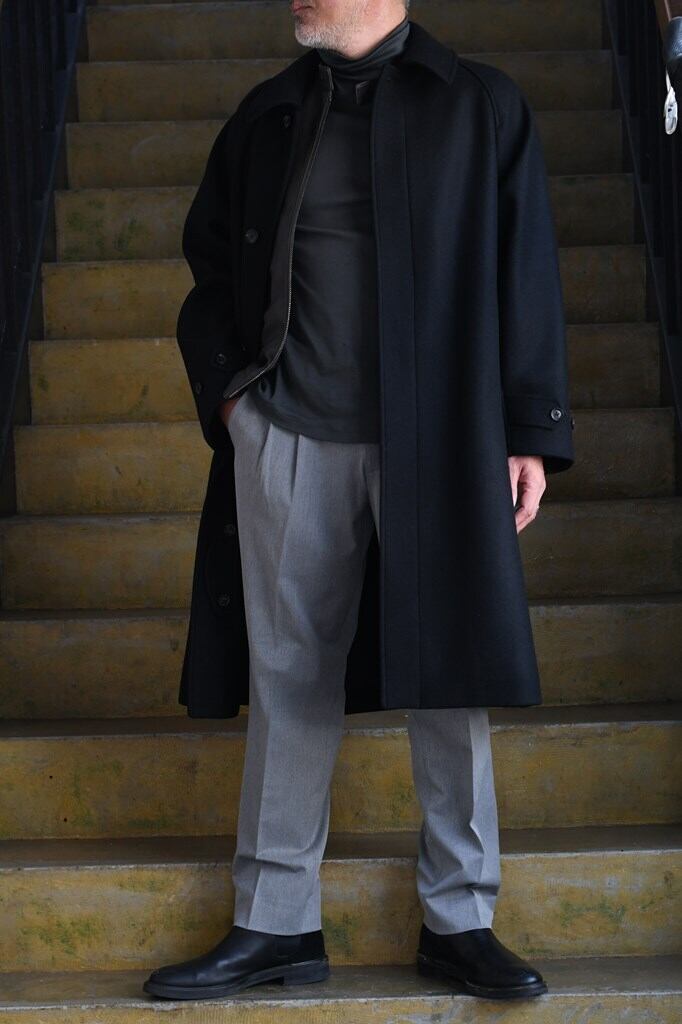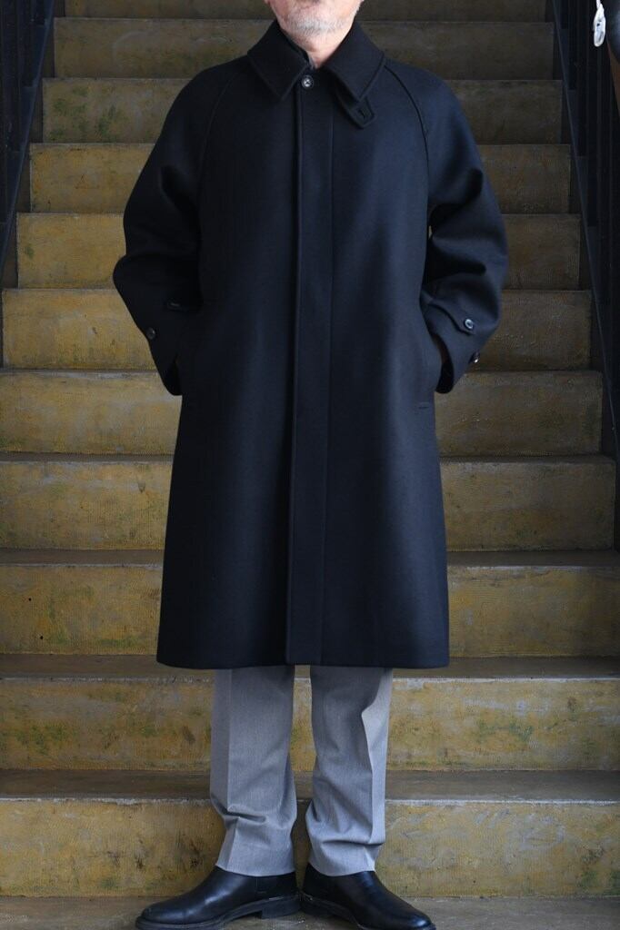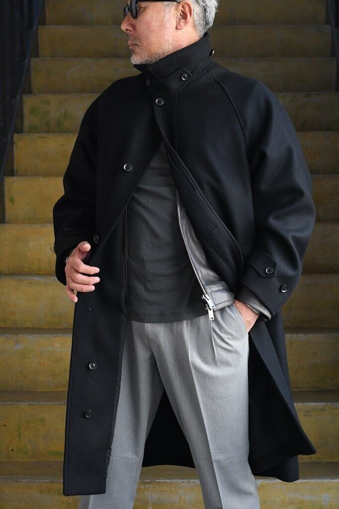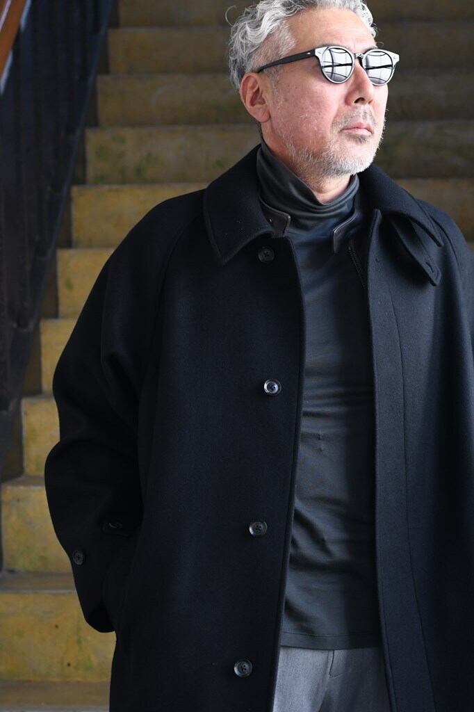クラシックな雰囲気と洗練されたミニマルデザインが融合した"MELTON BALCOLLAR COAT"。