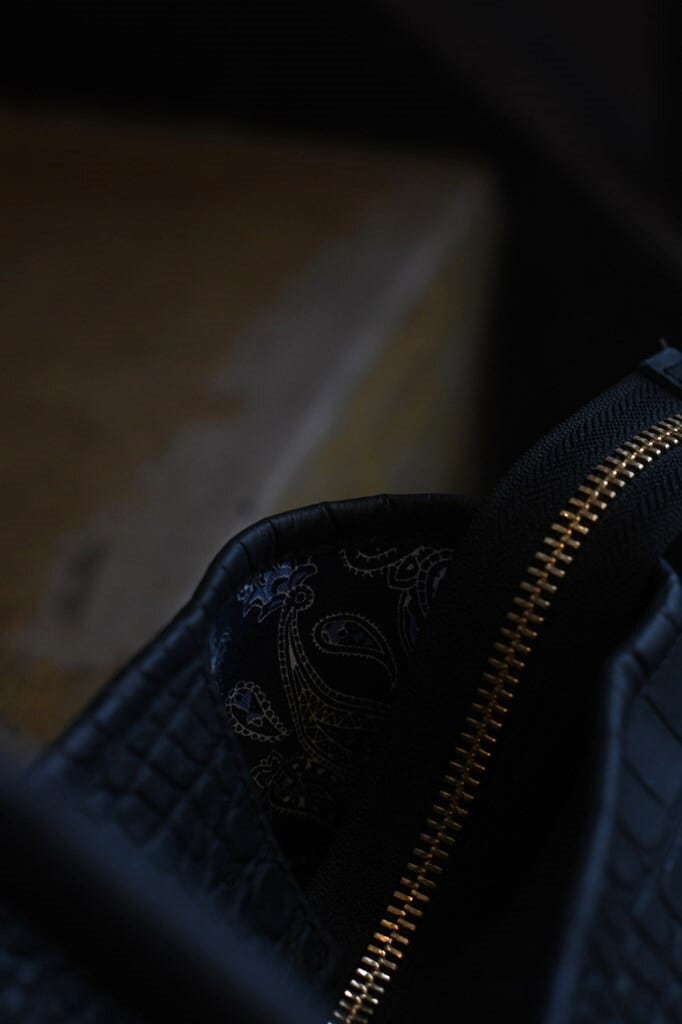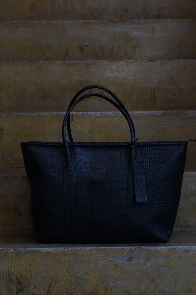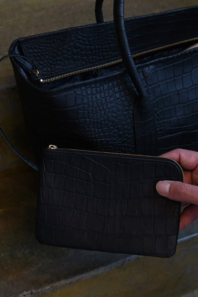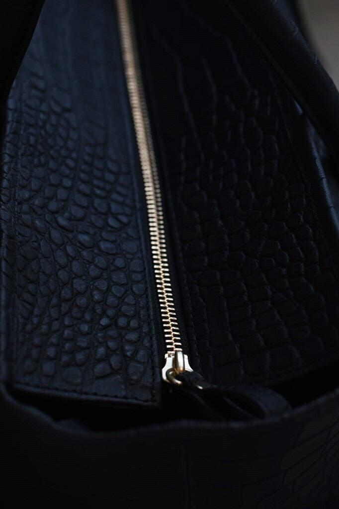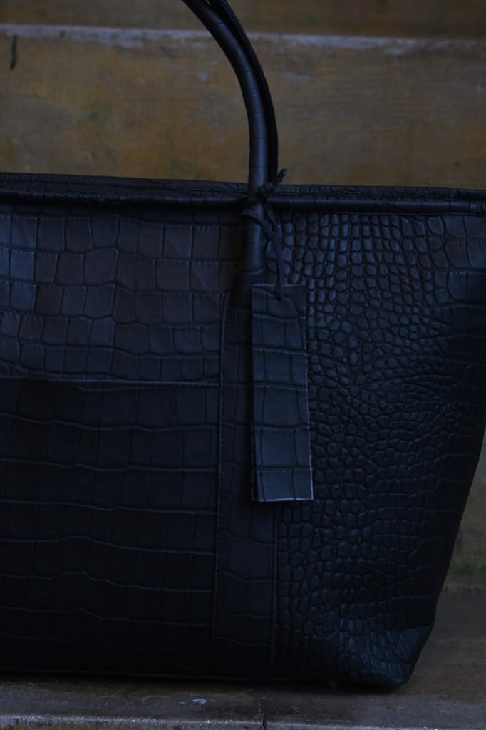 高品質で、メリハリの効いたクロコの型押し牛革を使用したミニトートバッグ。