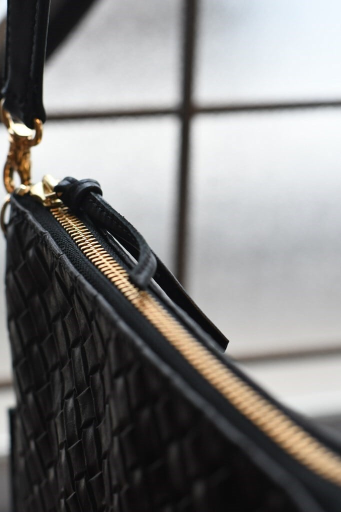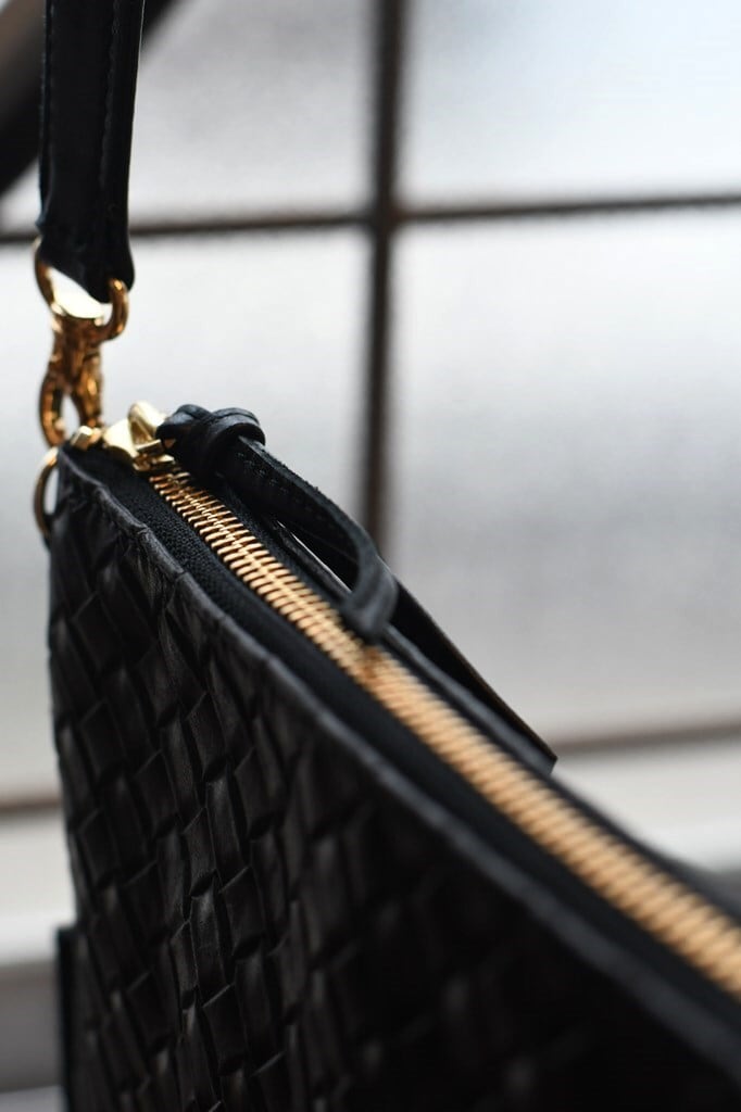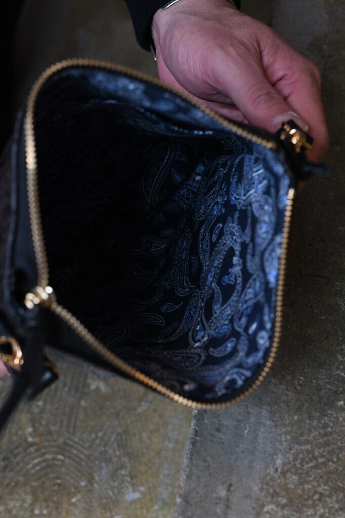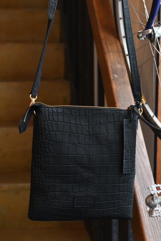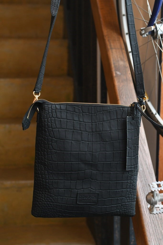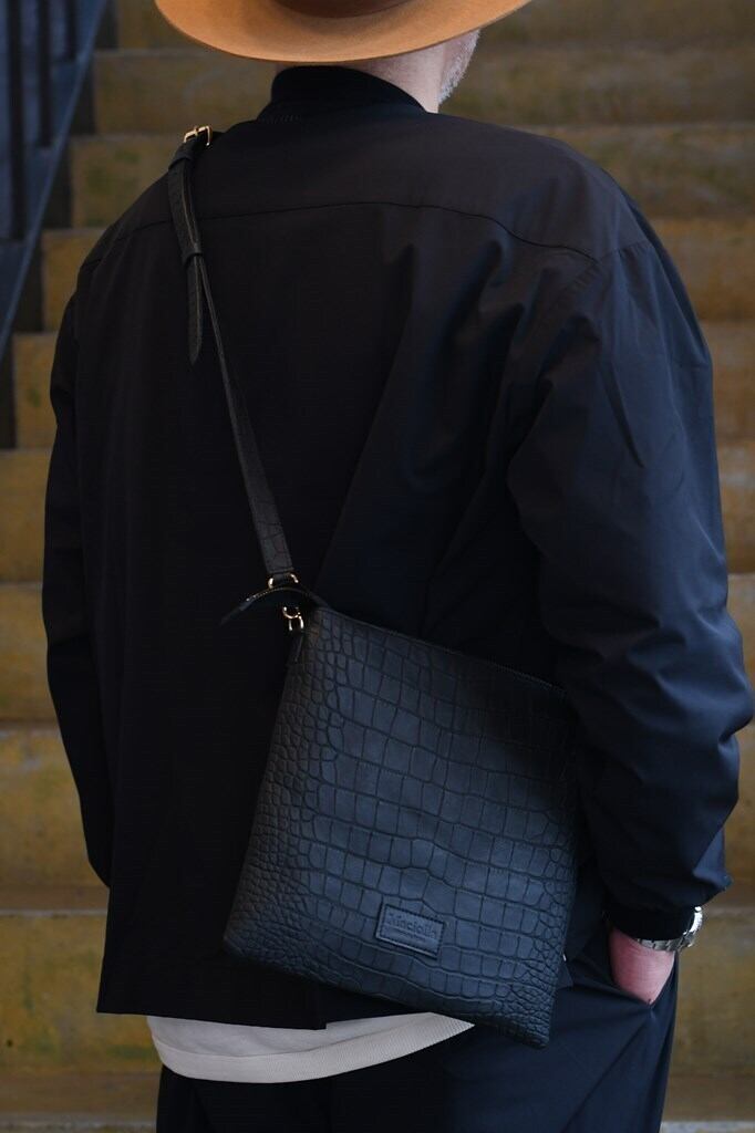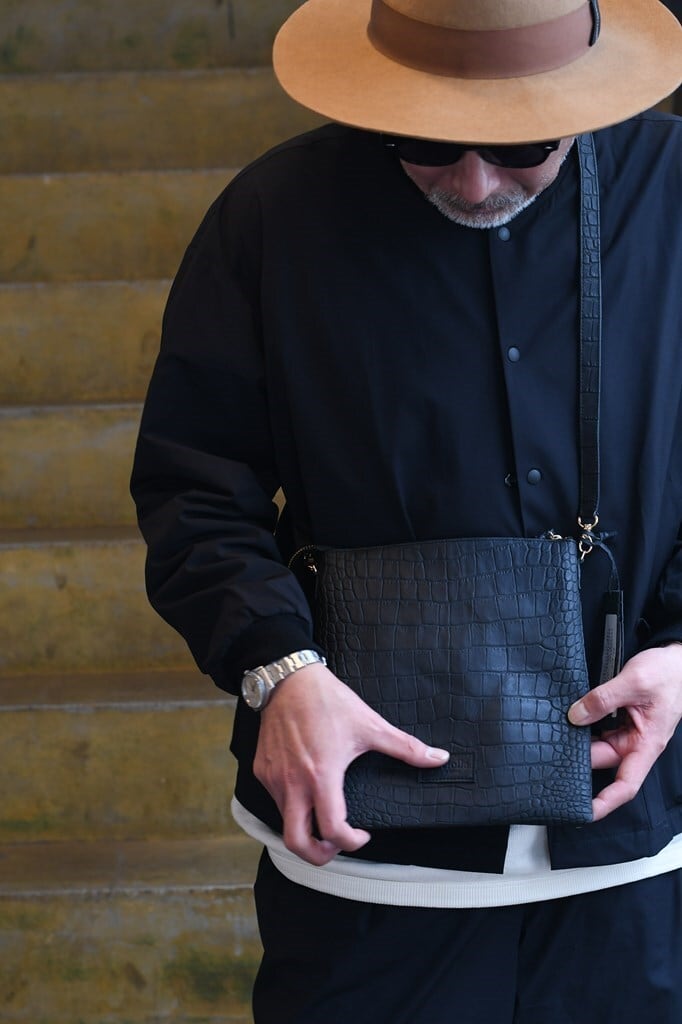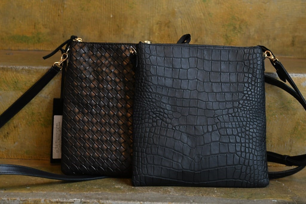 高品質で、メリハリの効いたクロコの型押し牛革を使用したミニトートバッグ。