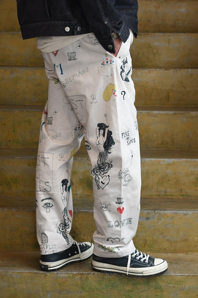 定番のルーズパンツより人気の手描きタッチの雰囲気の良いROSY柄が春物にも登場しました!