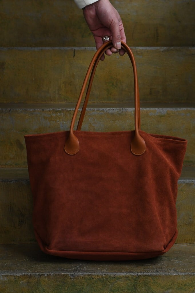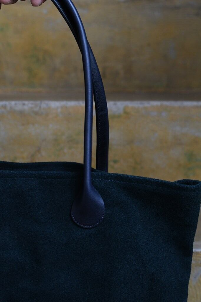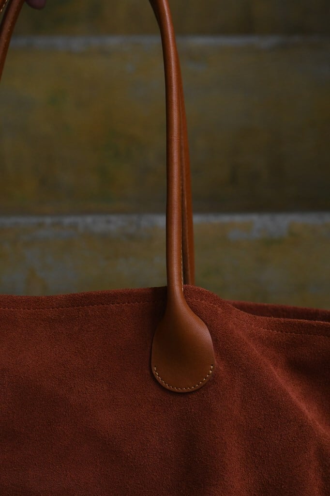 持ち手の素材にはイタリアのタンナーで作られる適度なコシとしなやかさのあるベジタブルタンニング鞣しの良質な牛革を使用。コバ(裁断面)は丁寧に手磨き仕上げしてます。