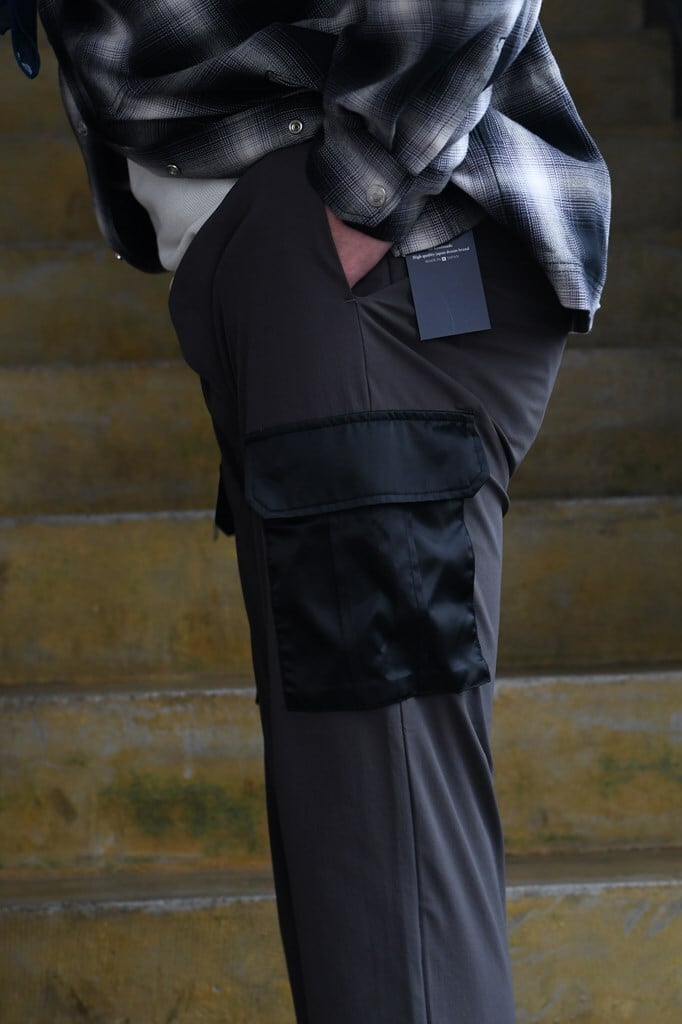 カーゴポケットを強調させルためにイタリアはリモンタ社の光沢のある