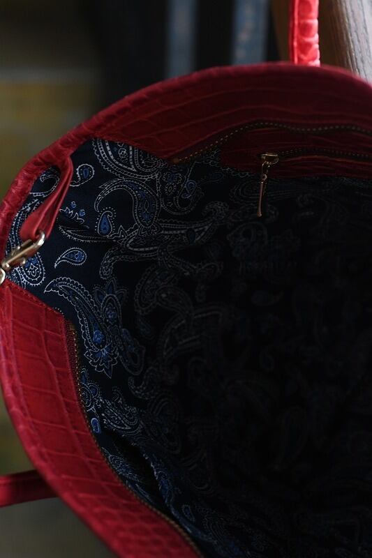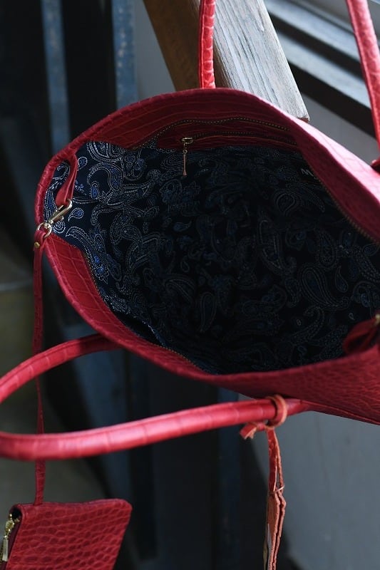 高品質で、メリハリの効いたクロコの型押し牛革を使用したミニトートバッグ。