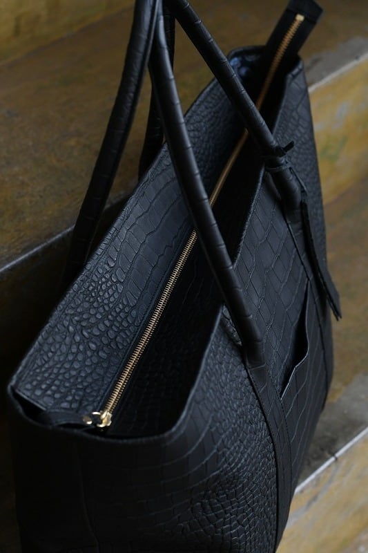 高品質で、メリハリの効いたクロコの型押し牛革を使用したミニトートバッグ。