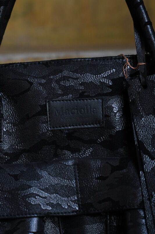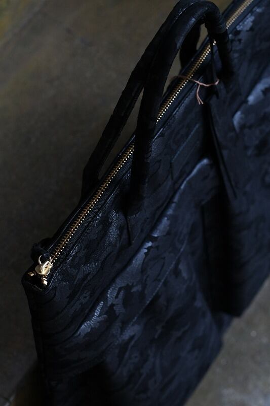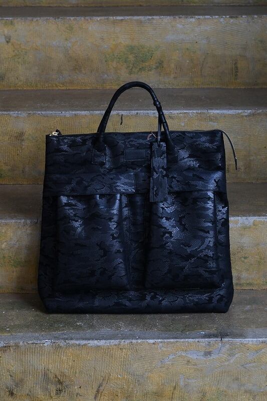 ユニセックスで持てるサイジング、表面には光に当たると浮き出すSHADOW CAMOUFLAGEレザートートバッグ最新作。