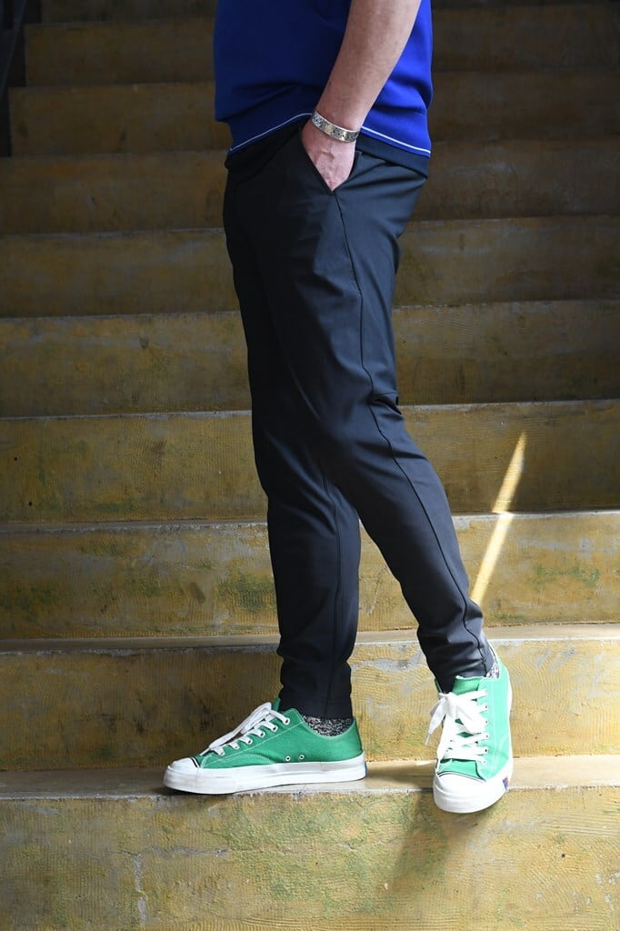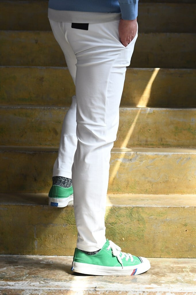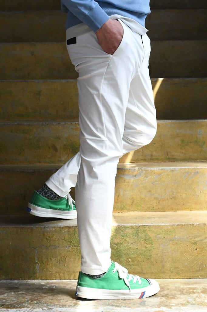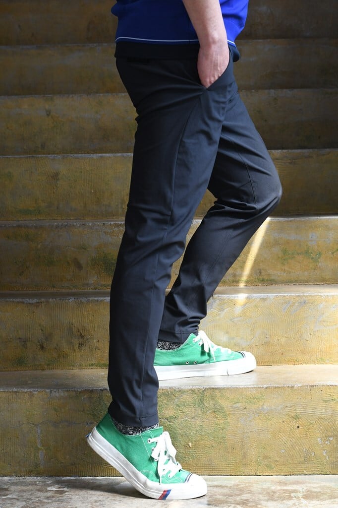 ゴルフから日常まで、幅広く着回せる高機能スリムパンツ。