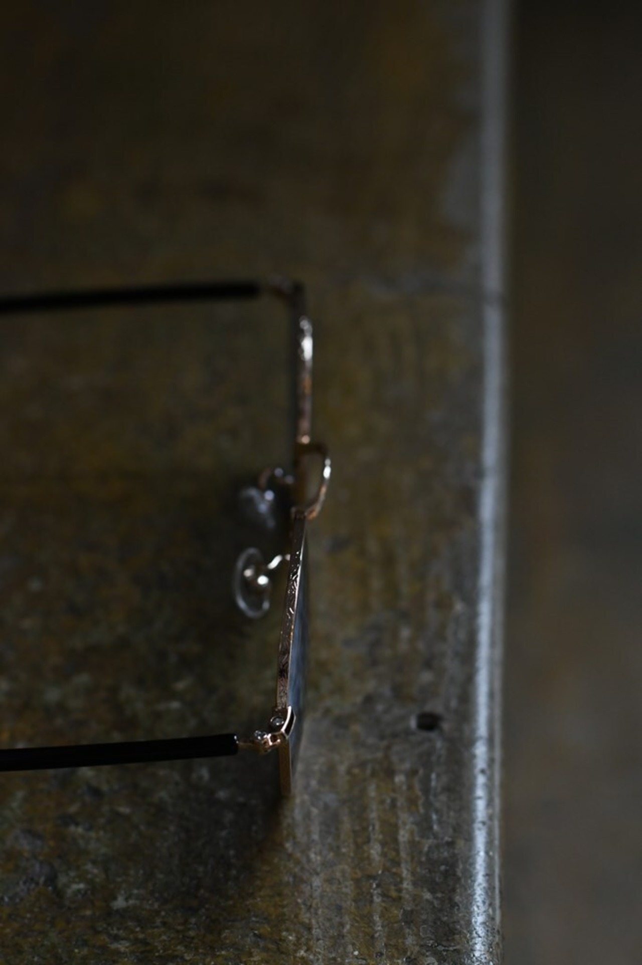 メタル特有の線の細さの中に、リム・ブリッジ上部には細かな