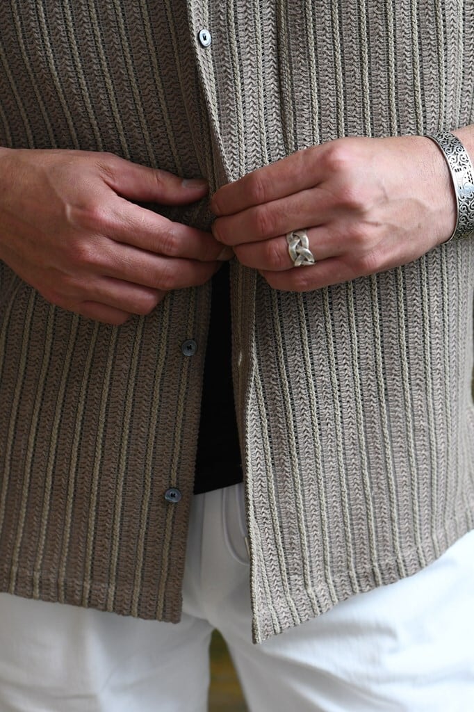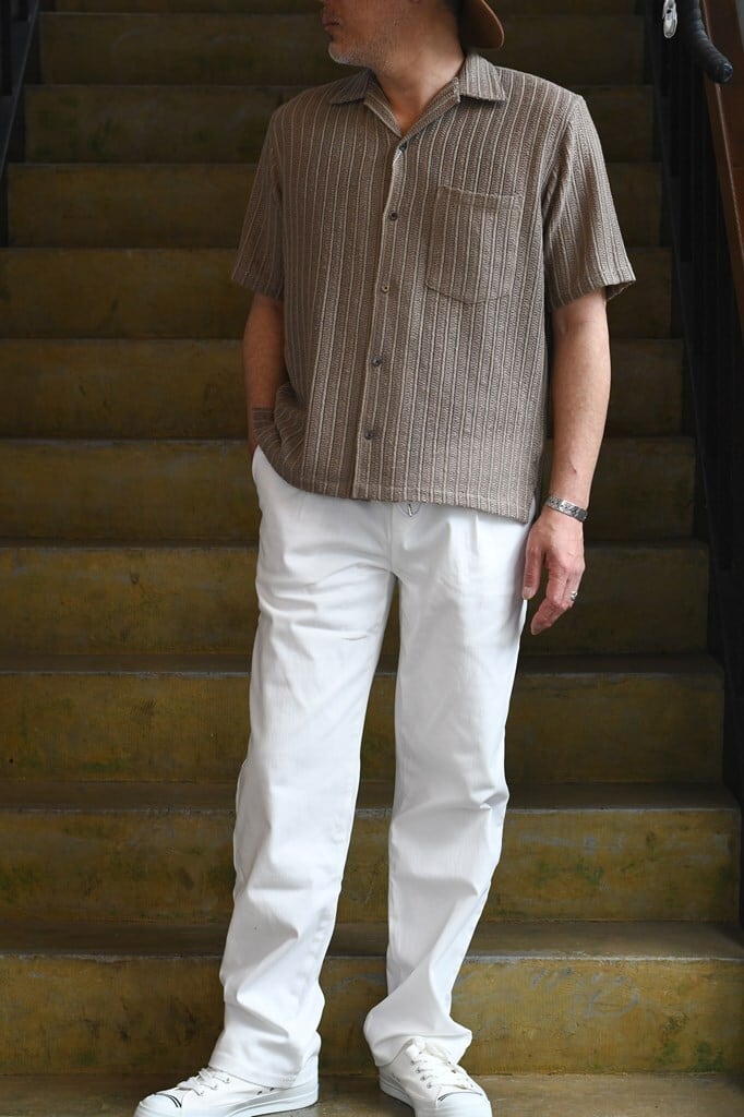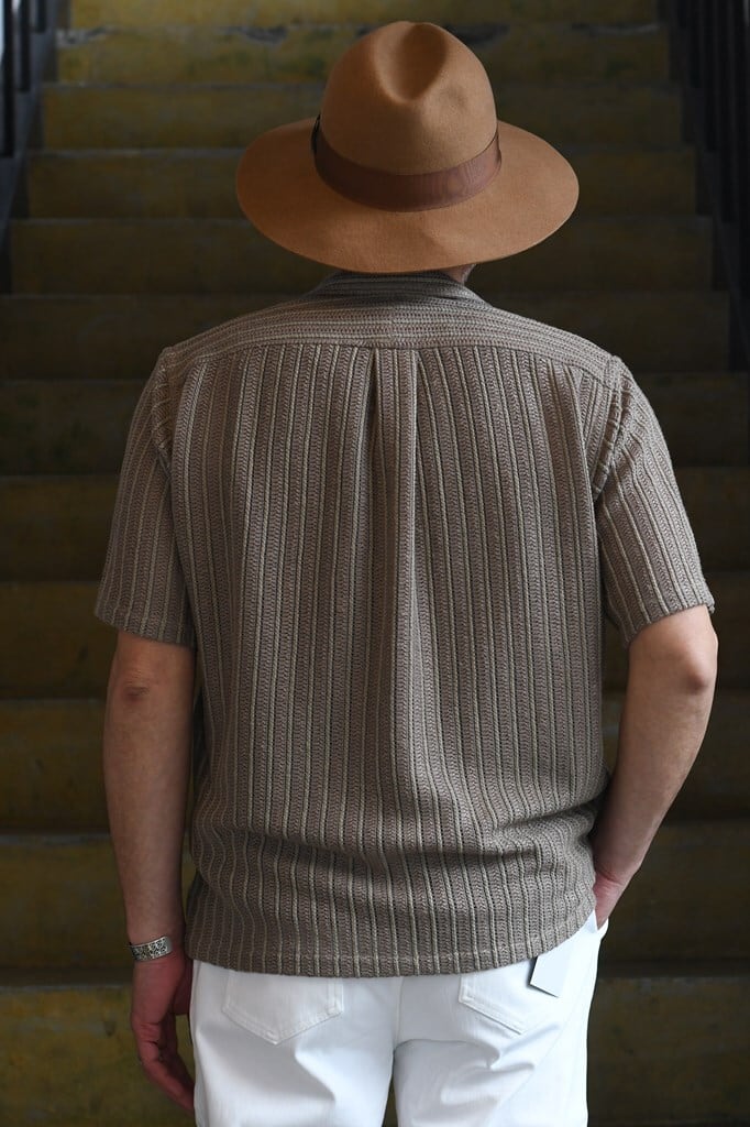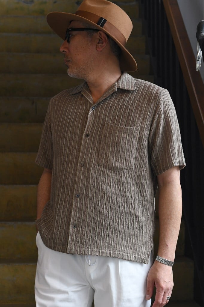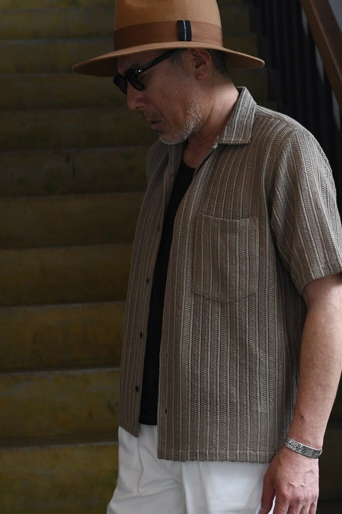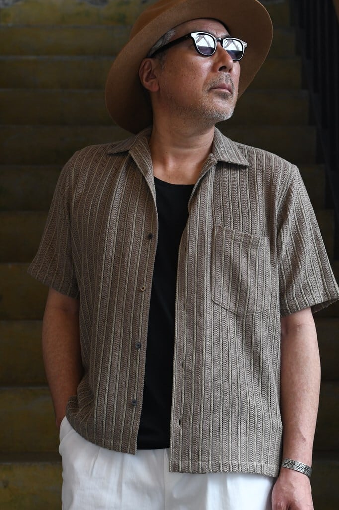 清涼感とリゾート感を備えたロープ状ラッセル織りシャツ