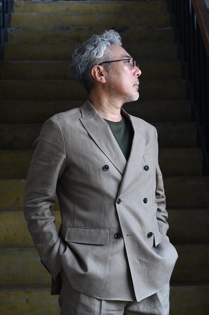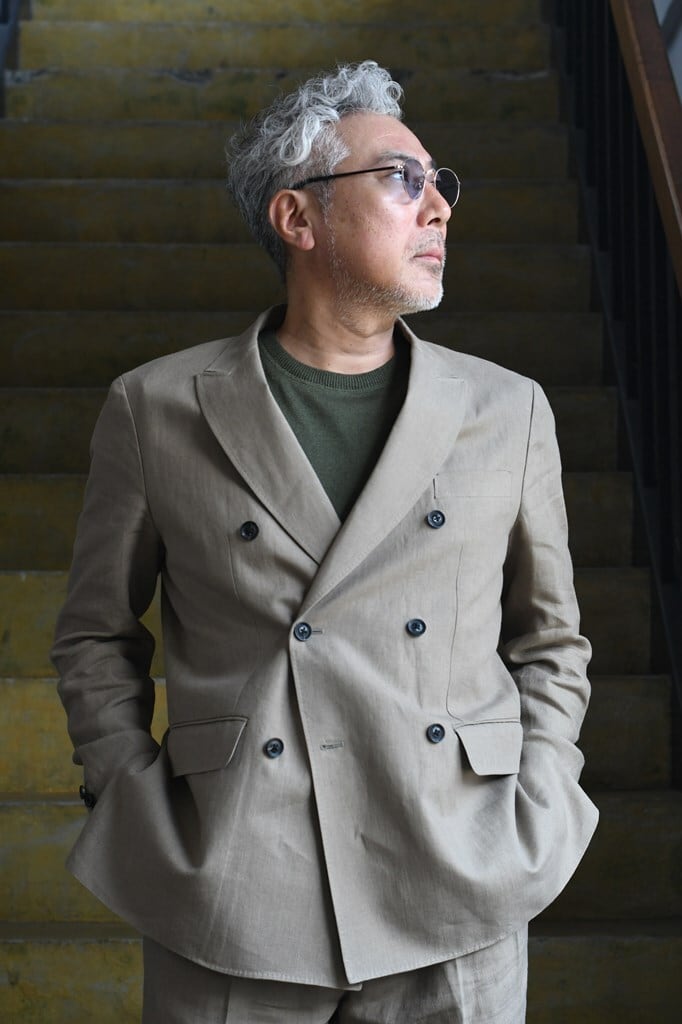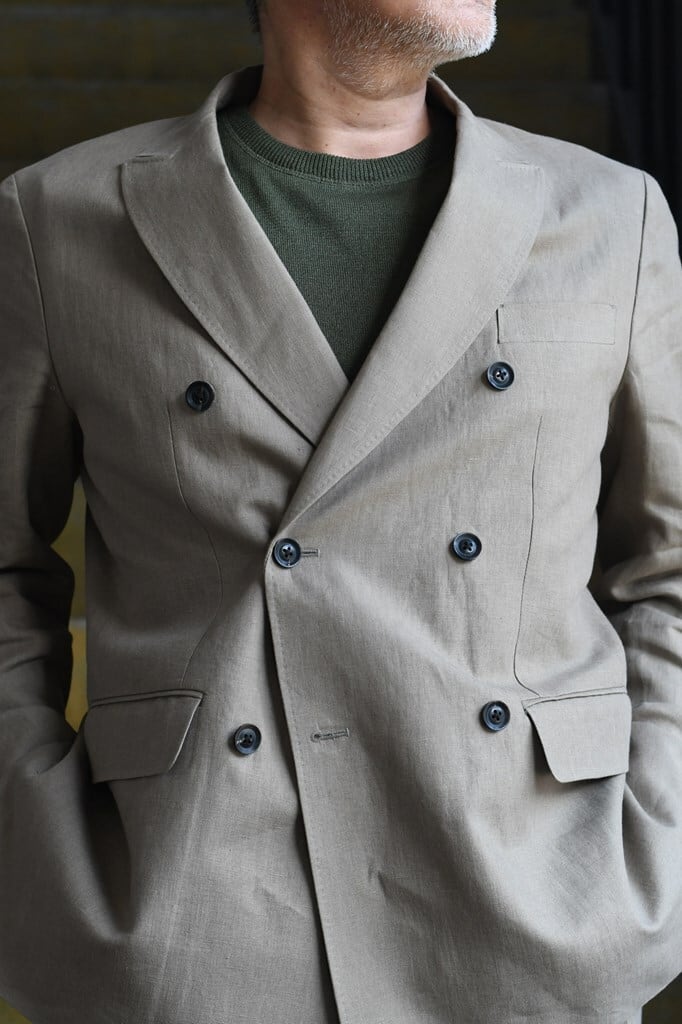 軽やかなリネンが品格を演出する、都会的なダブルジャケット。
