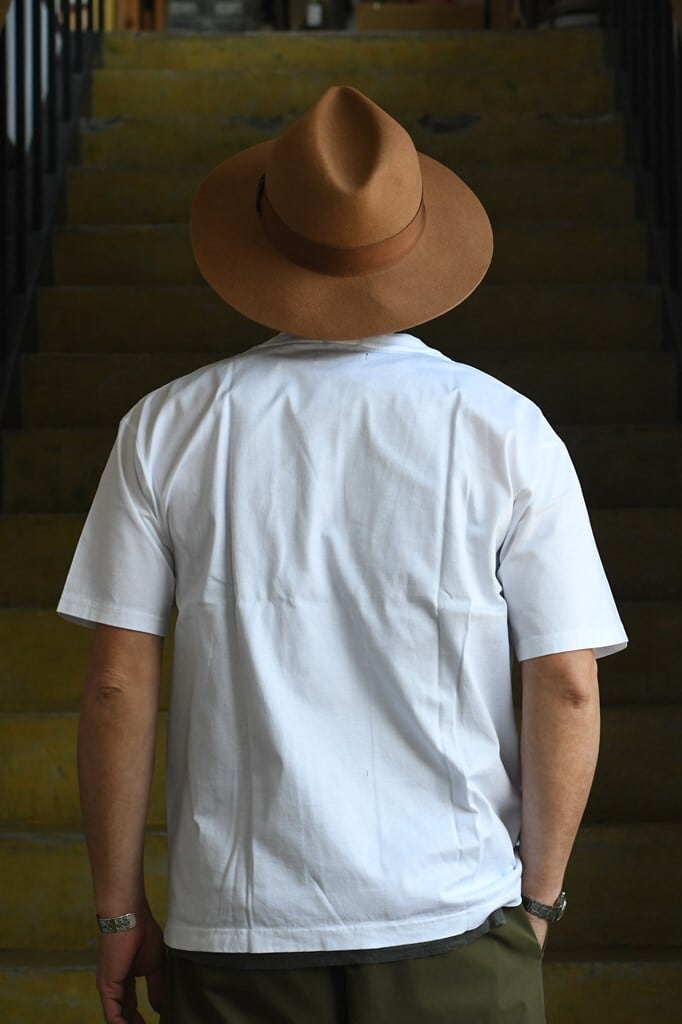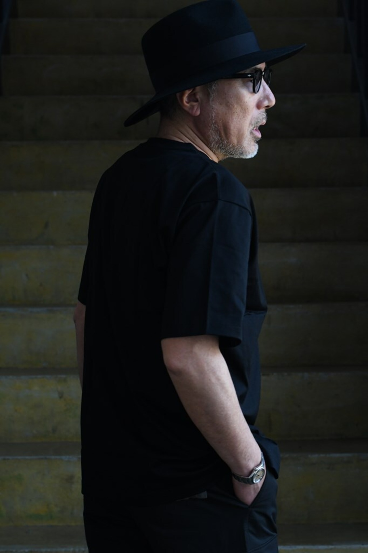 シルエットは、junhashimotoでは珍しいオーバーサイズ。袖も5部丈程まで達する大きめなサイズ感ながら、着丈を調節している為、野暮ったい印象にならないjunashimotoでしか体感できない心地良さ。
