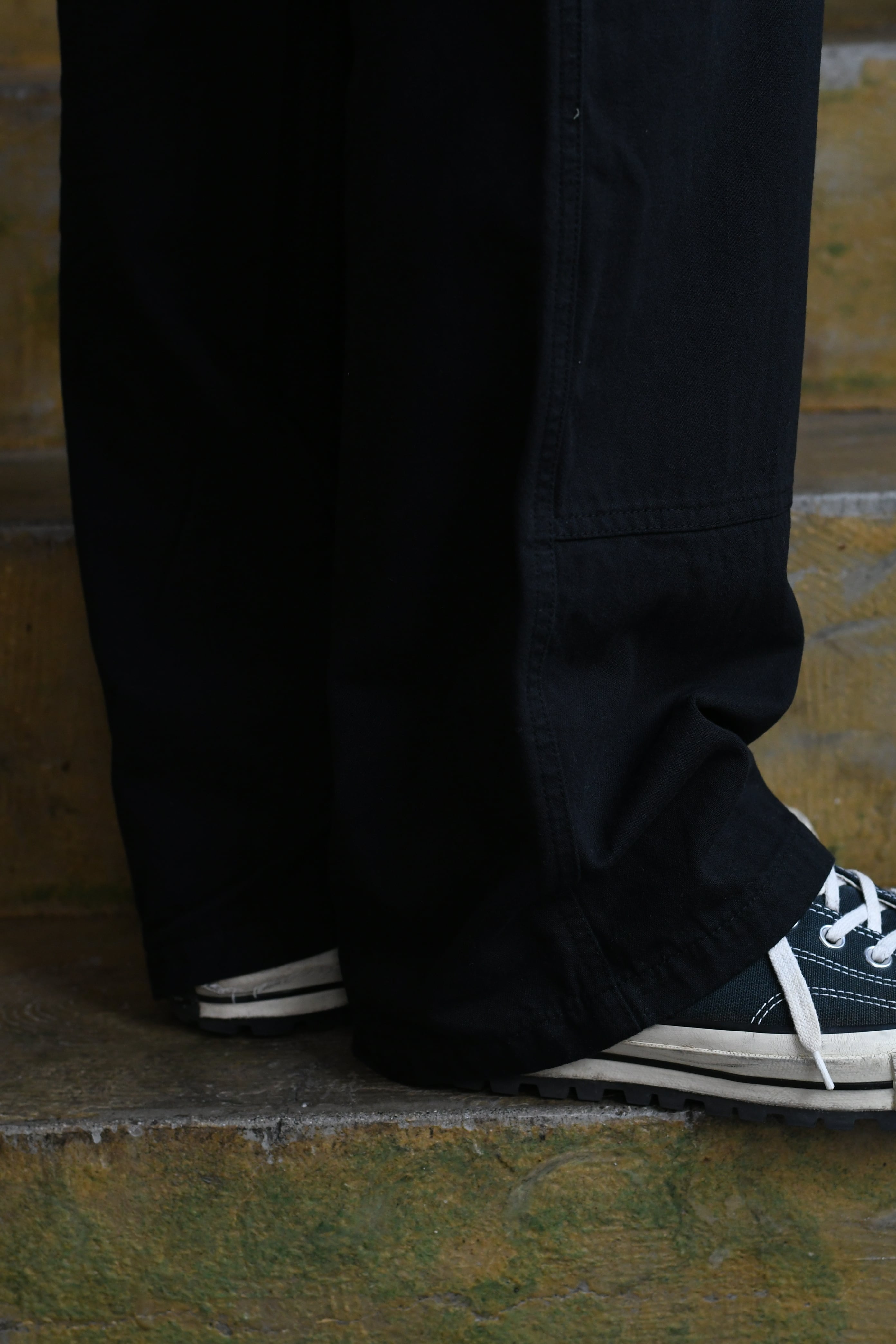 2枚合わせの膝もリベットや装飾はなく、シンプルないイメージに