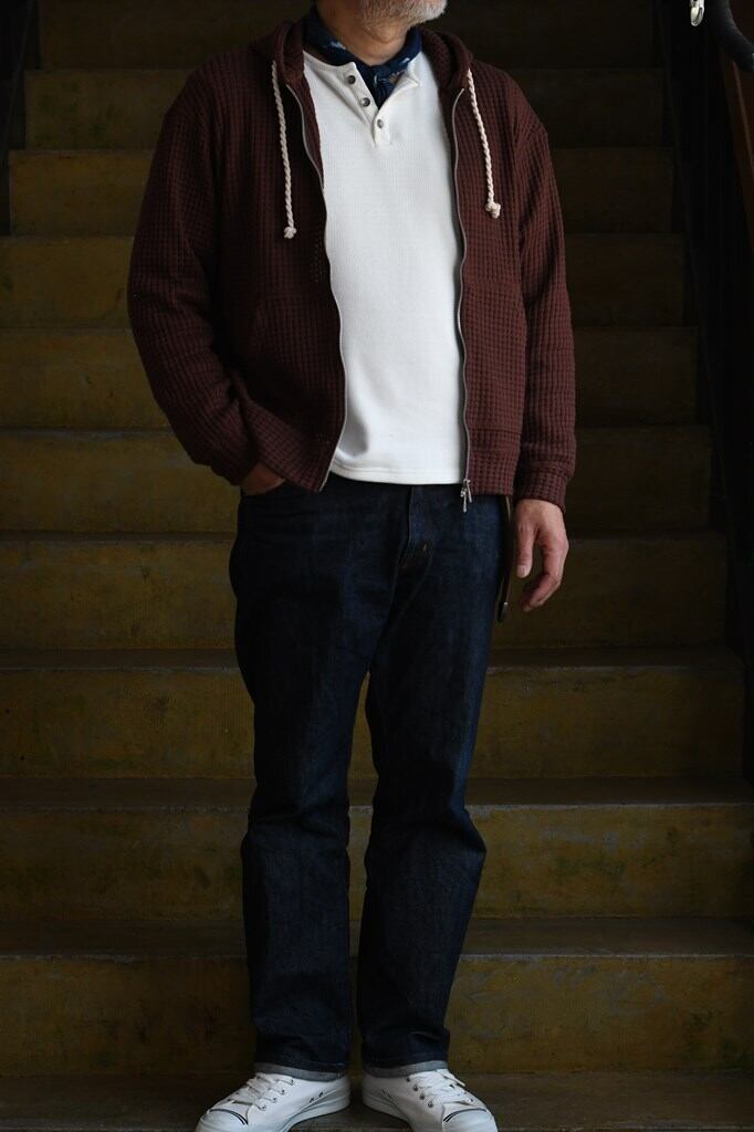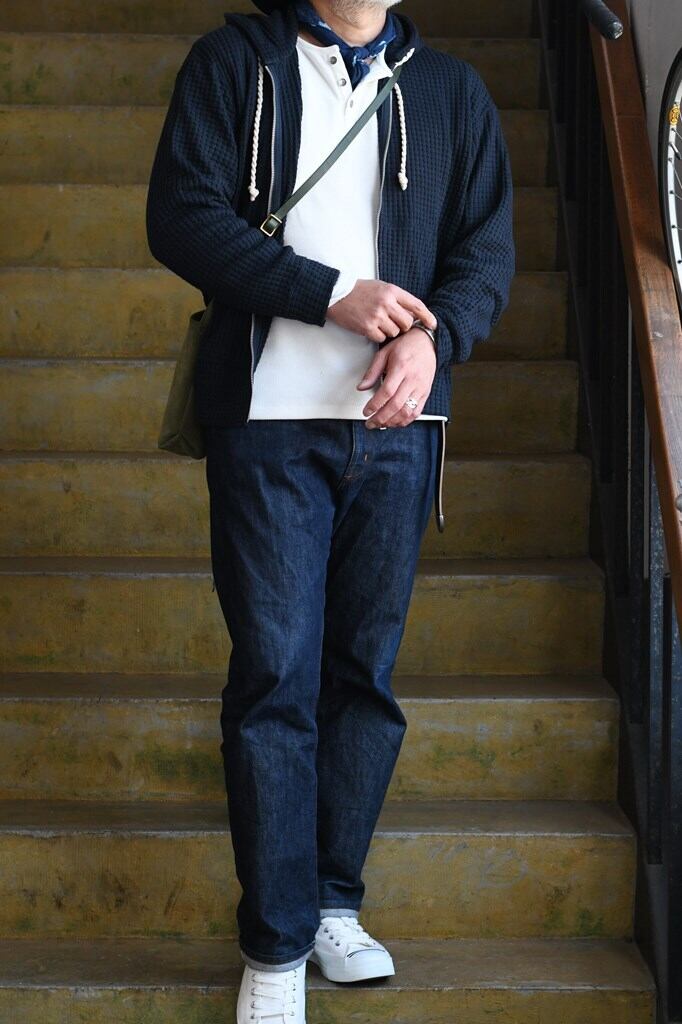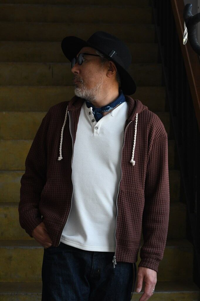 ・国内に数台しかない編み機を用いたワッフル素材を使用。