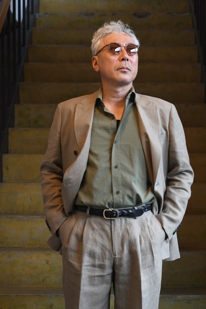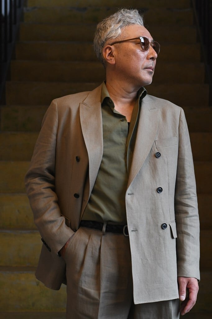 シャープな表情とリラックス感を両立した、都会的な一枚。