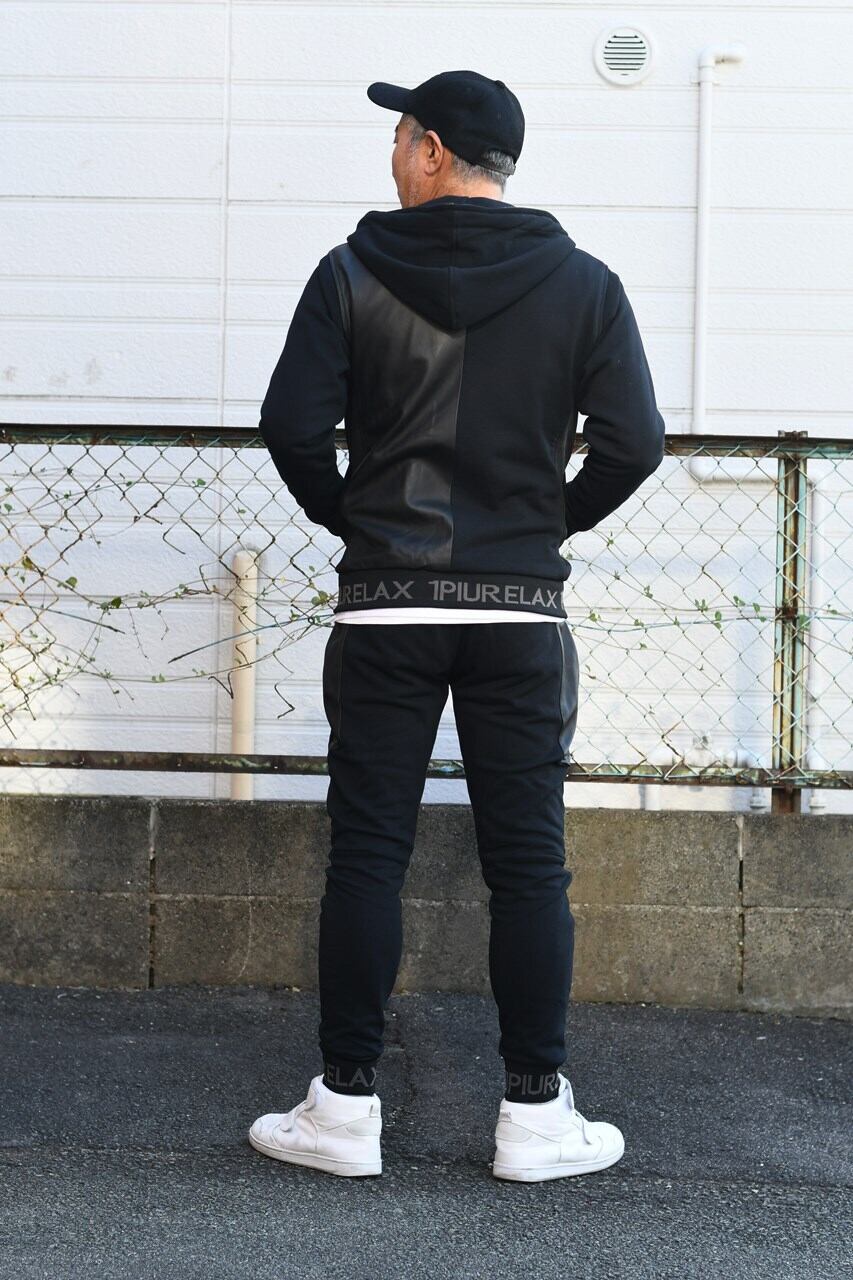1PIU1UGUALE3 RELAX ハーフレザースウェットパンツ