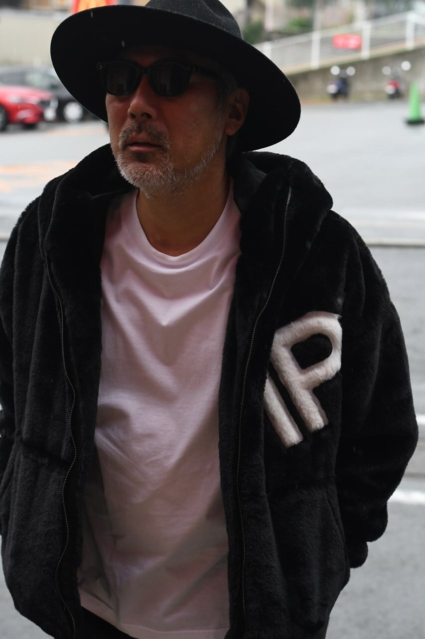 1PIU1UGUALE3 RELAX フェイクファーロゴパーカー