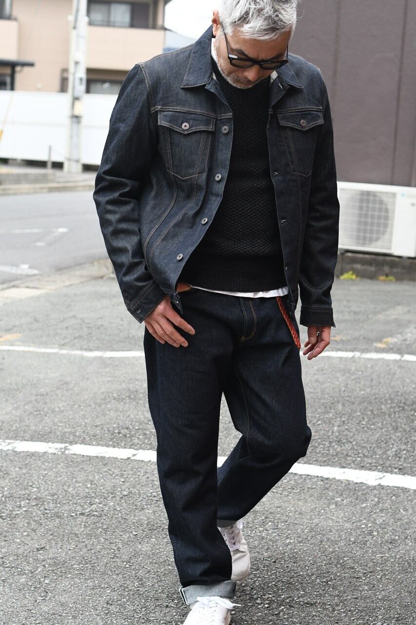 ヴィンテージと言ってもあまり古くない年代ですが、旧式力織機でゆっくりと織り上げ、表情をさらに引き出すために13オンスのゼルヴィッチに仕上げています。