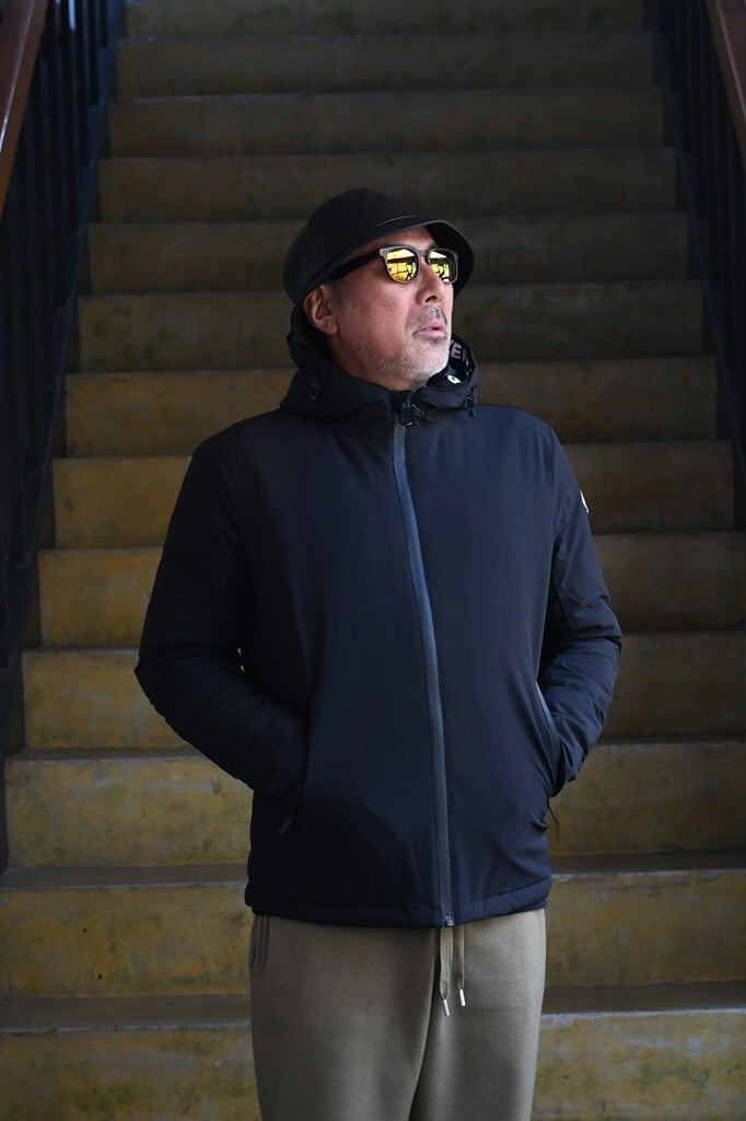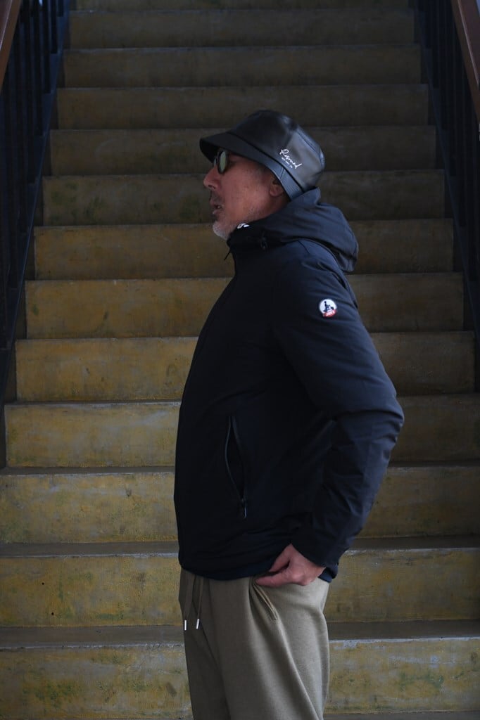 また、ハンドポケットやフロントジップのジッパーは止水ジッパーになり、袖口にはジャージー生地のリブ付きなど、