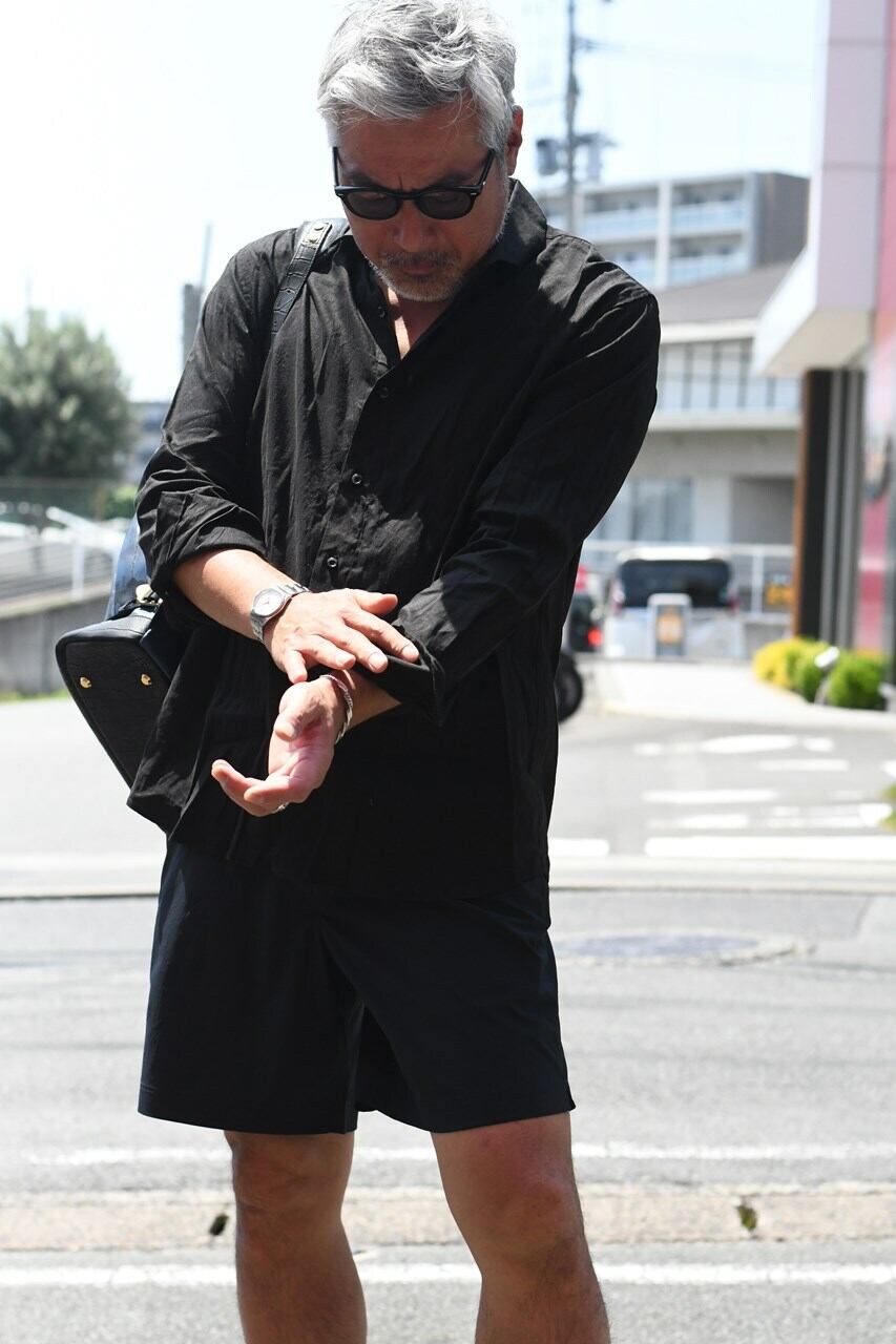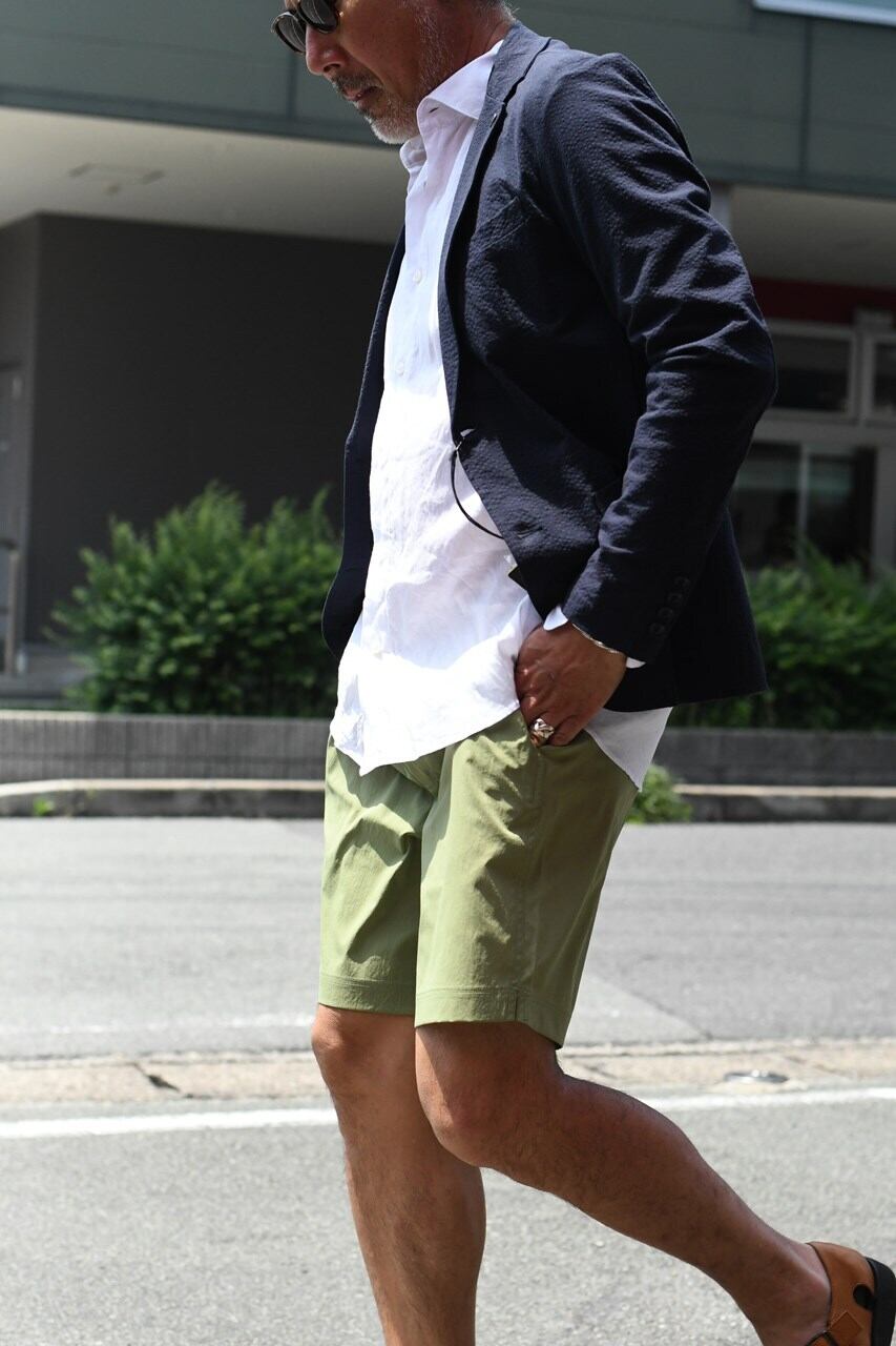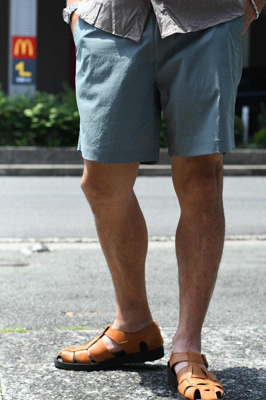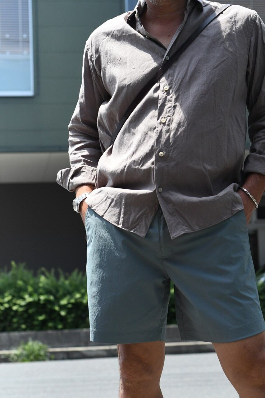 タウンユースはもちろん海でも使える水陸両用パンツ”2WAY SWIM SHORTS”のご紹介。 タスラン糸使用の綿強撚糸のようなスパンタッチ合繊は完成された高品質素材。ドライなタッチでもオリジナル加工によりナチュラルな表情に仕上がっております。 短めの丈のスッキリしたシルエットは清涼感があり、ウエストゴムをなくしてきれい目な印象に仕上げています。