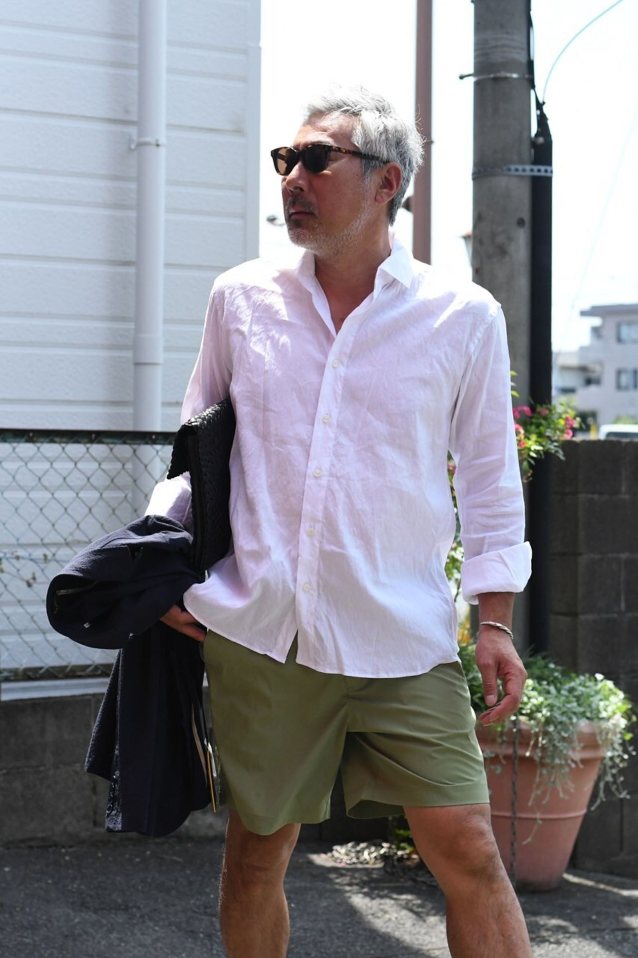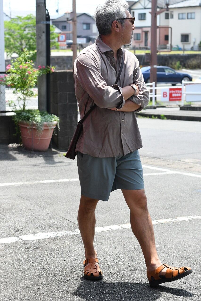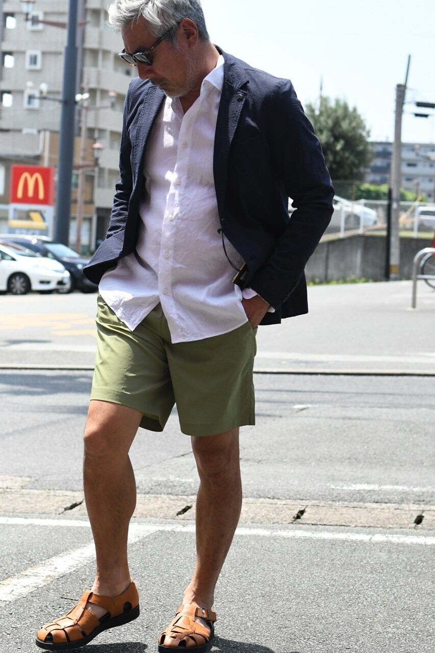 タウンユースはもちろん海でも使える水陸両用パンツ”2WAY SWIM SHORTS”のご紹介。 タスラン糸使用の綿強撚糸のようなスパンタッチ合繊は完成された高品質素材。ドライなタッチでもオリジナル加工によりナチュラルな表情に仕上がっております。 短めの丈のスッキリしたシルエットは清涼感があり、ウエストゴムをなくしてきれい目な印象に仕上げています。