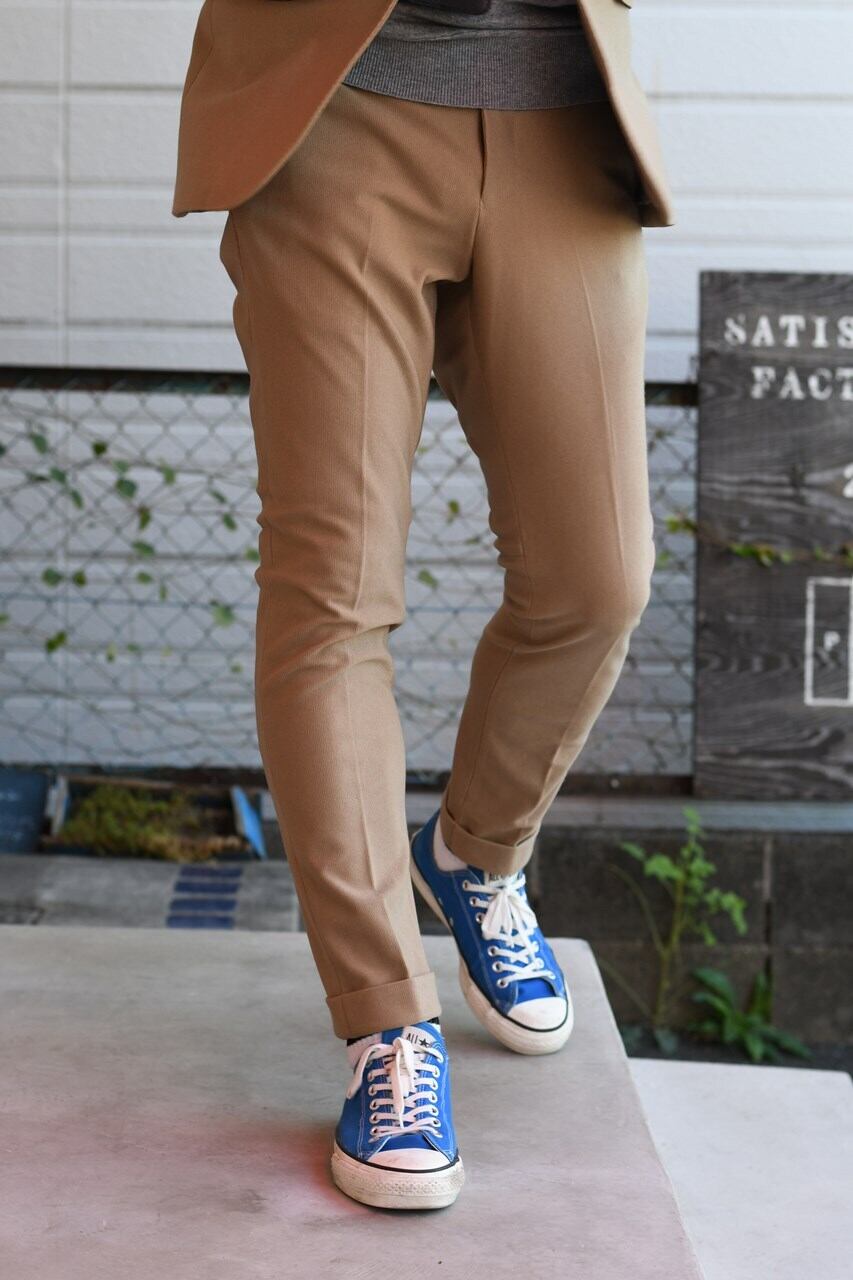 シルエットも表面感も美しいテーパードパンツに、高機能素材を融合させることで、動けるテーパードパンツに仕上げました。