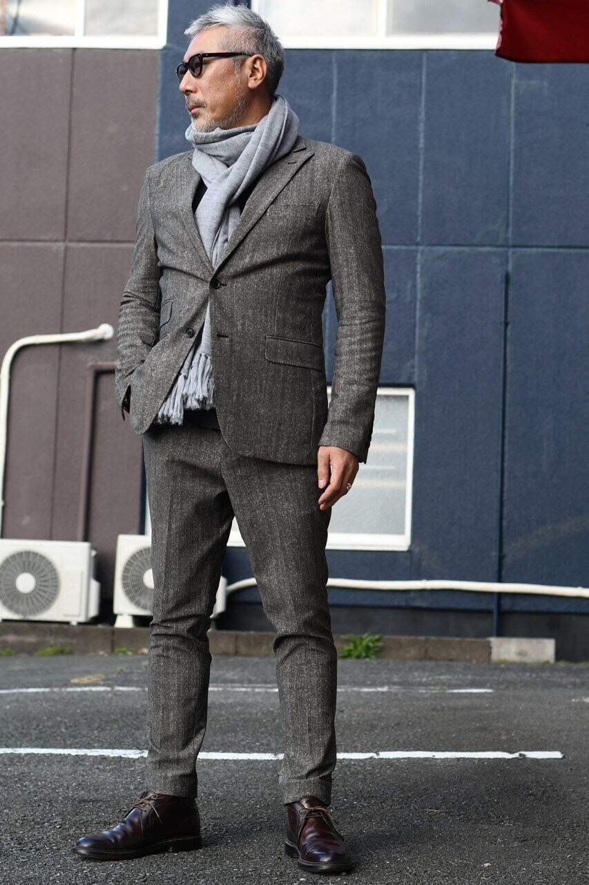 一見するとウールの正統派クラシックジャケットに見える、しかし実はジャージ生地!