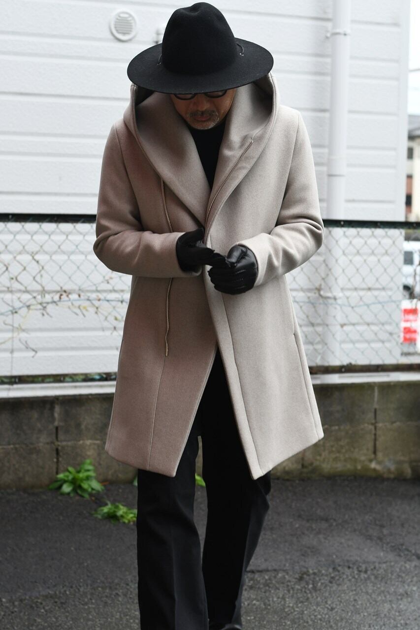 junhashimotoが誇る大人気アイテム、WRAP COAT。そのWRAP COATが至高の素材を使い登場! カシミヤのやわらかい肌触り、艶感をを持ち合わせながらも とてもハリ感があるという夢のような素材を使用。