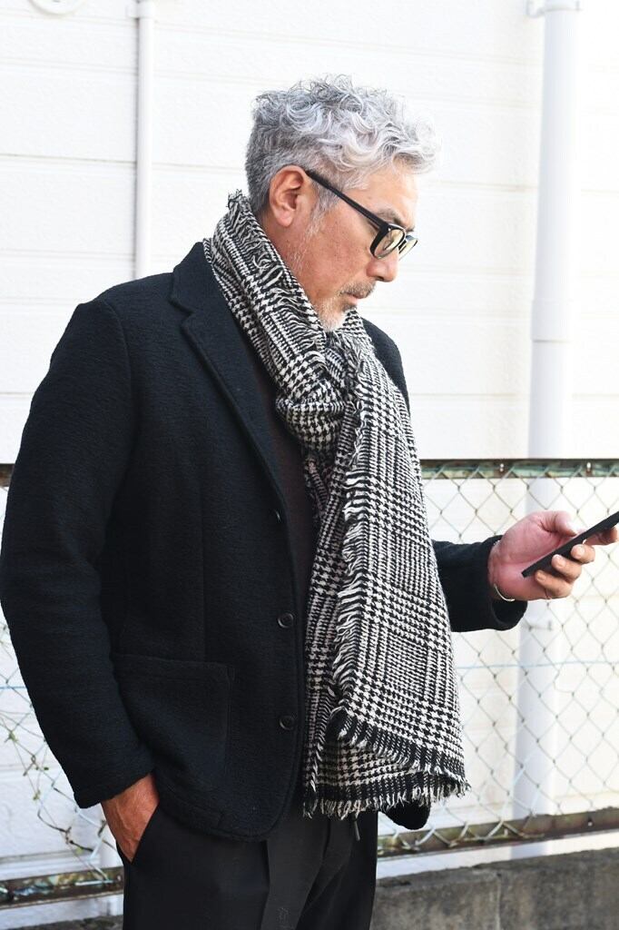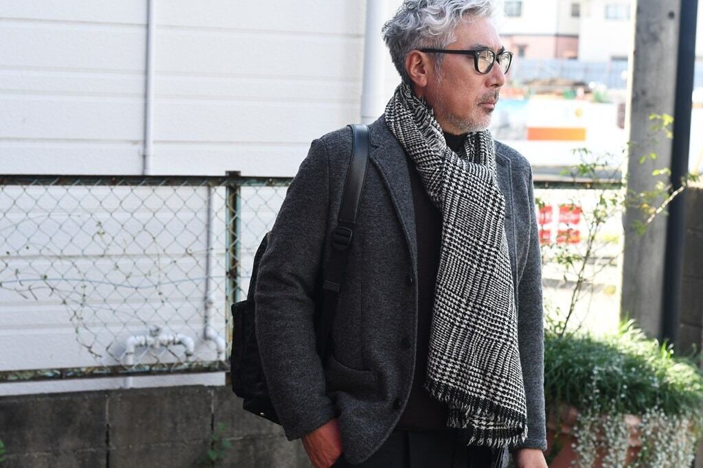見た目にも暖かみを感じさせる生地を使用し、余計な装飾を省いたシンプルな仕上がりで、日常使いしやすい一枚。