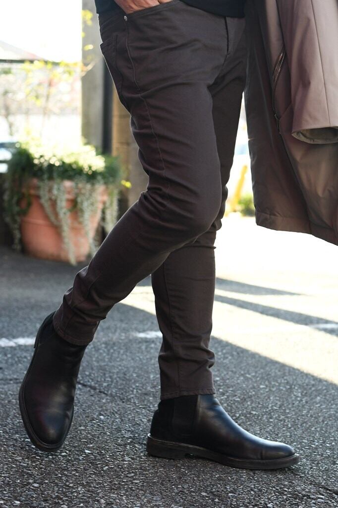 裏起毛ストレッチ素材を使用し、一見ストレッチ生地に見えないマットで上質な表情が特徴です。