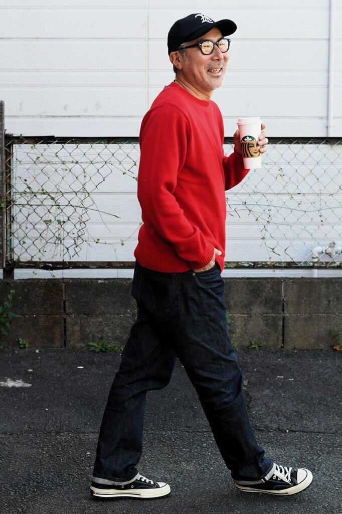 程良くルーズなシルエットでどんなボトムスとも相性が良いニットです