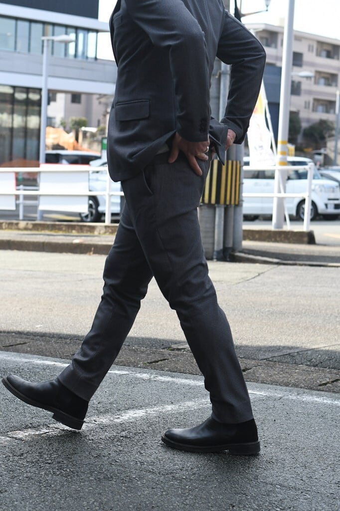 ストレッチ素材が活きる吸い付くような細身のシルエットが特徴で、冬のシーンで活躍するシルエットしかり、温もりも、申し分ない1着に仕上がりました。